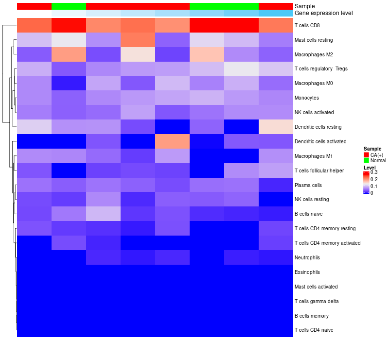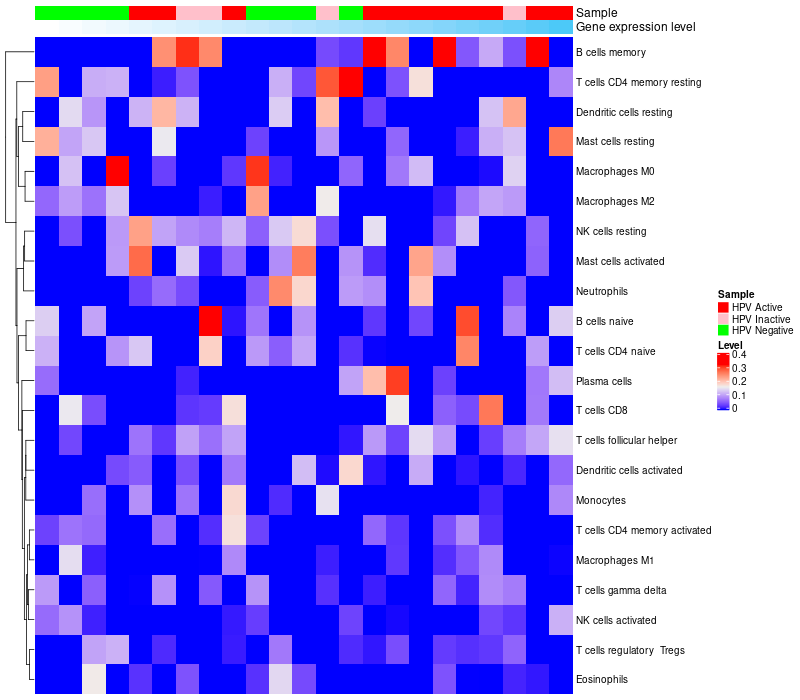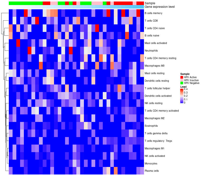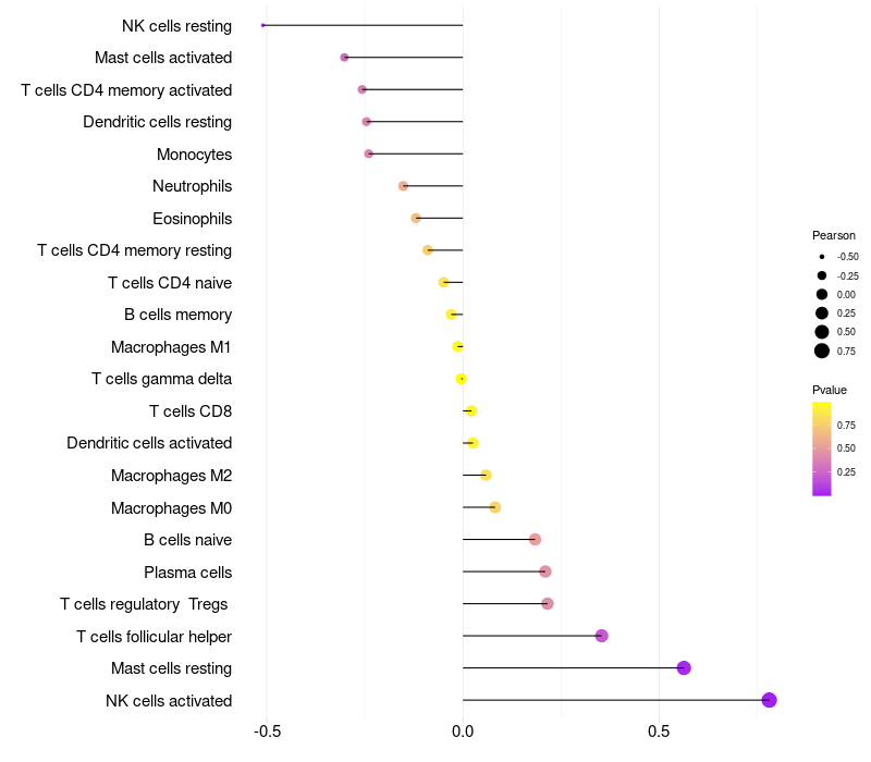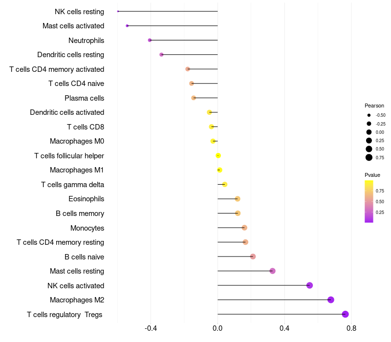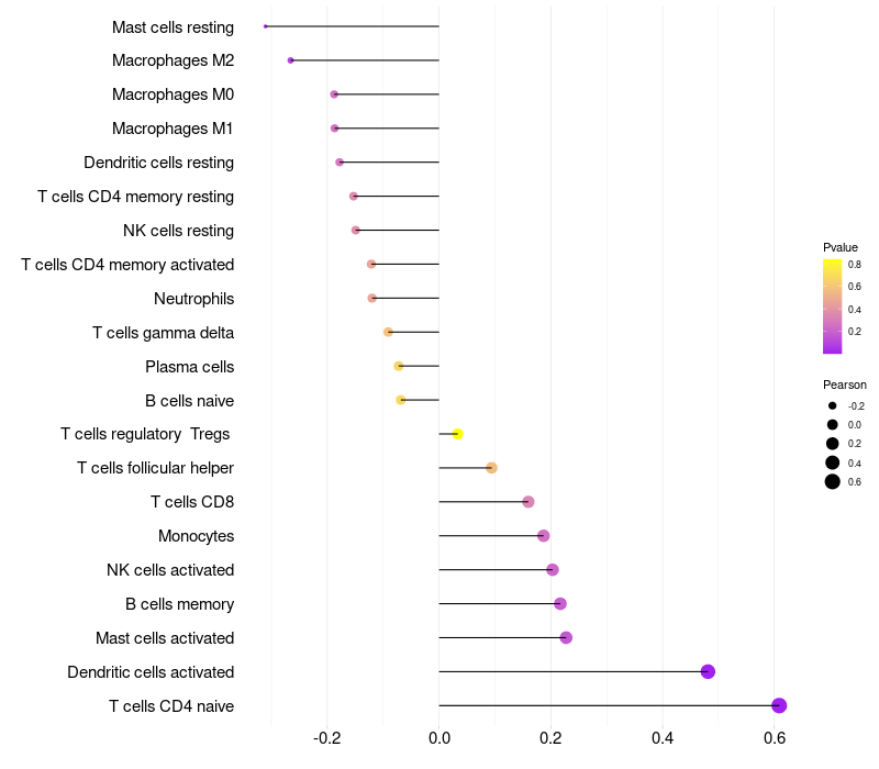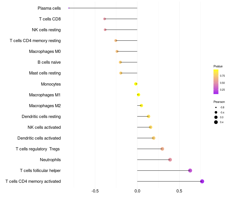 Lollipop of PCDH8 expression and immune infiltrating cell level correlation result in HPV+ samples