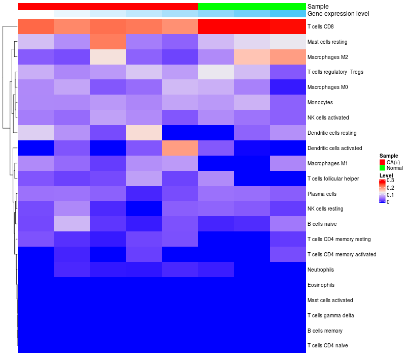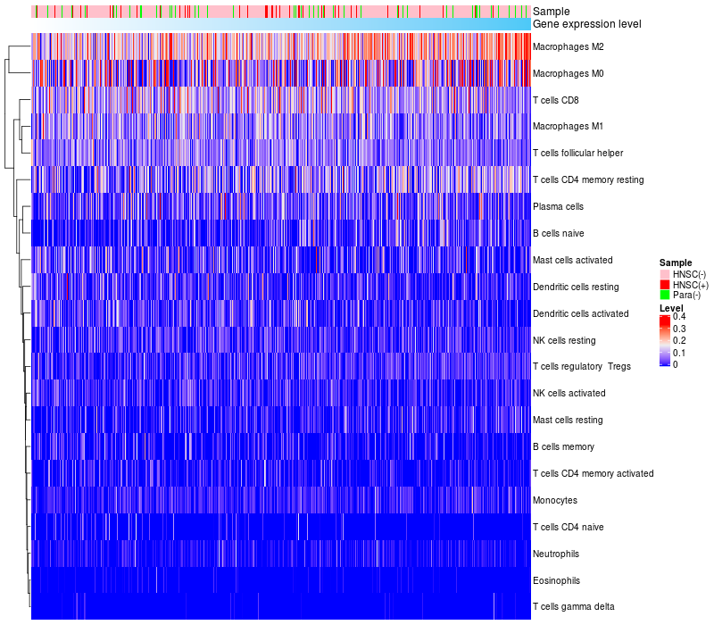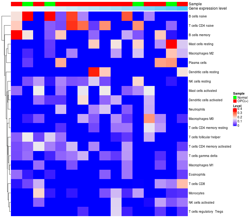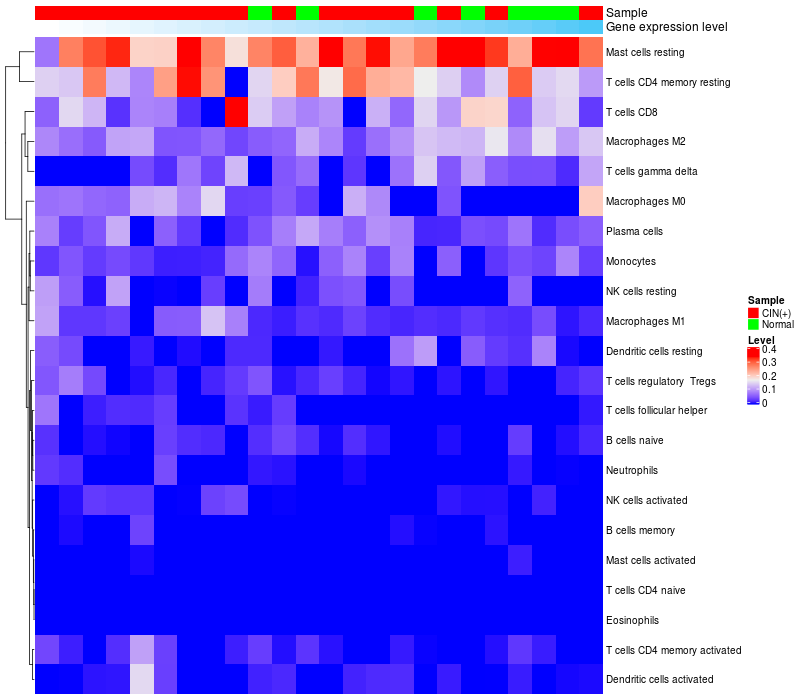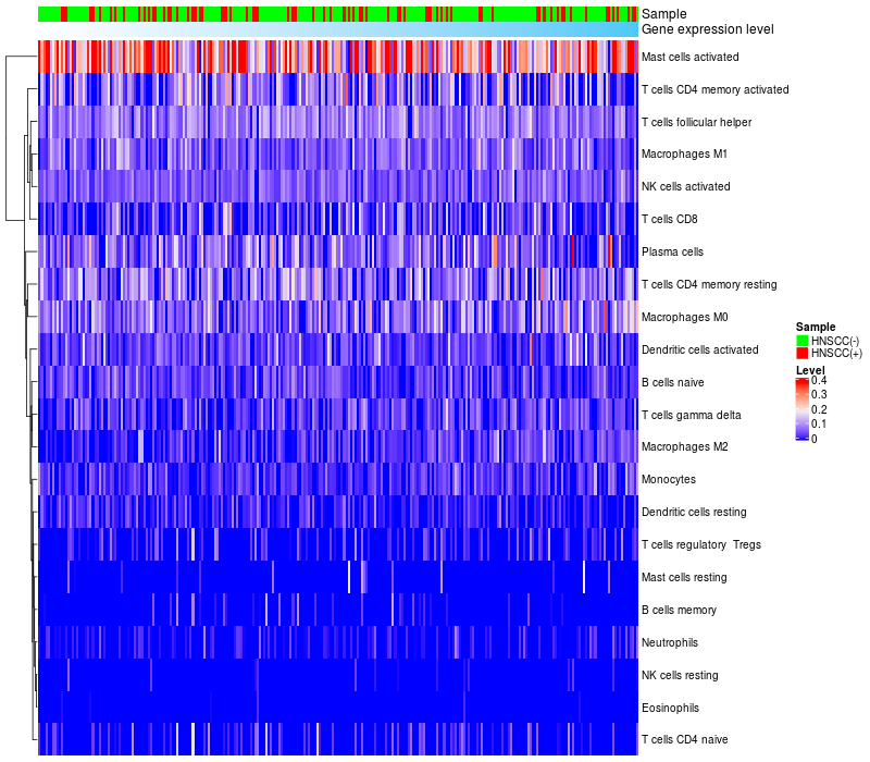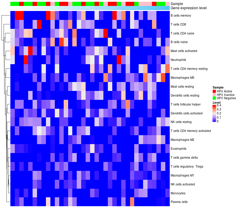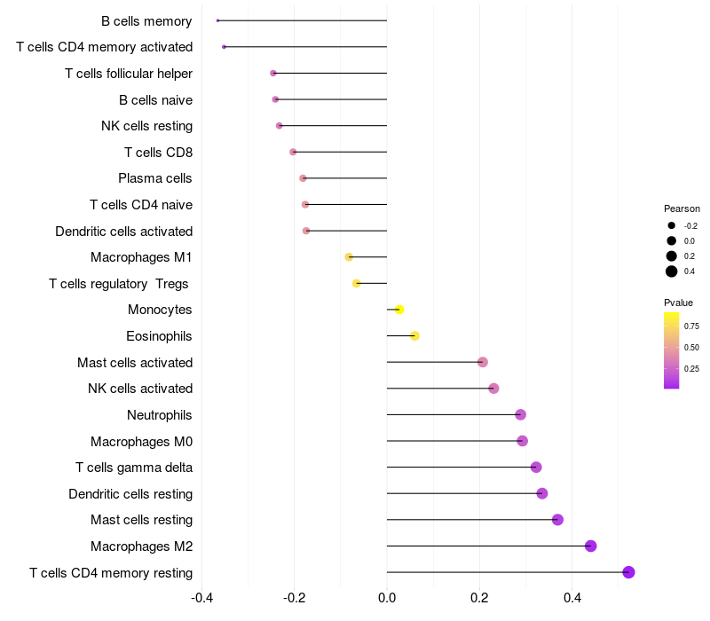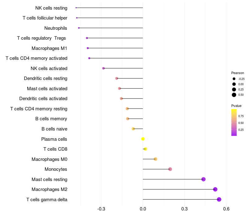 Lollipop of PDGFRL expression and immune infiltrating cell level correlation result in HPV+ samples