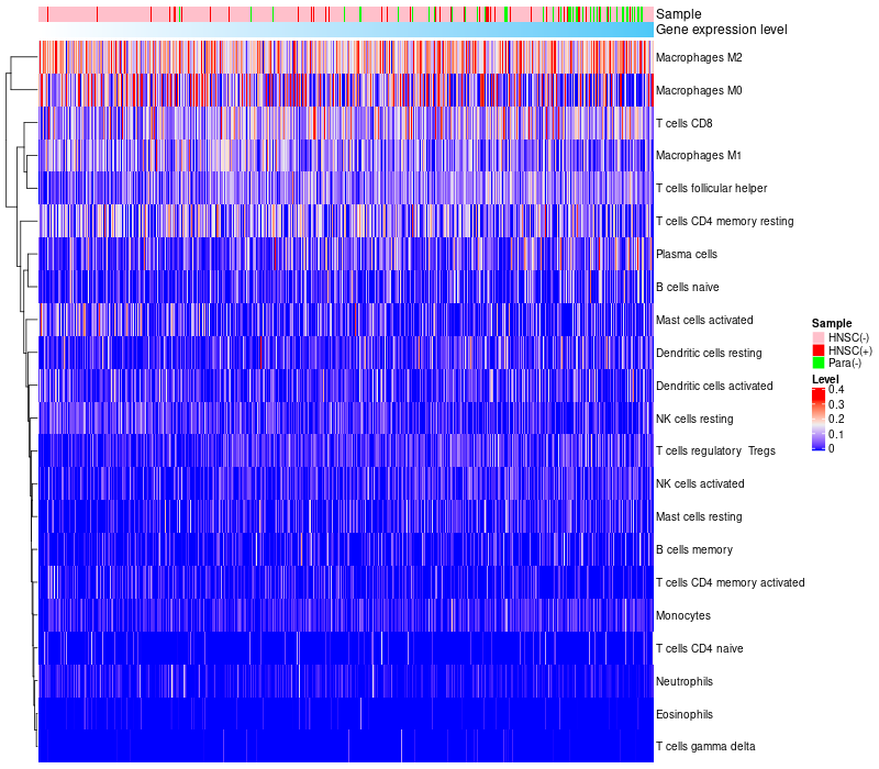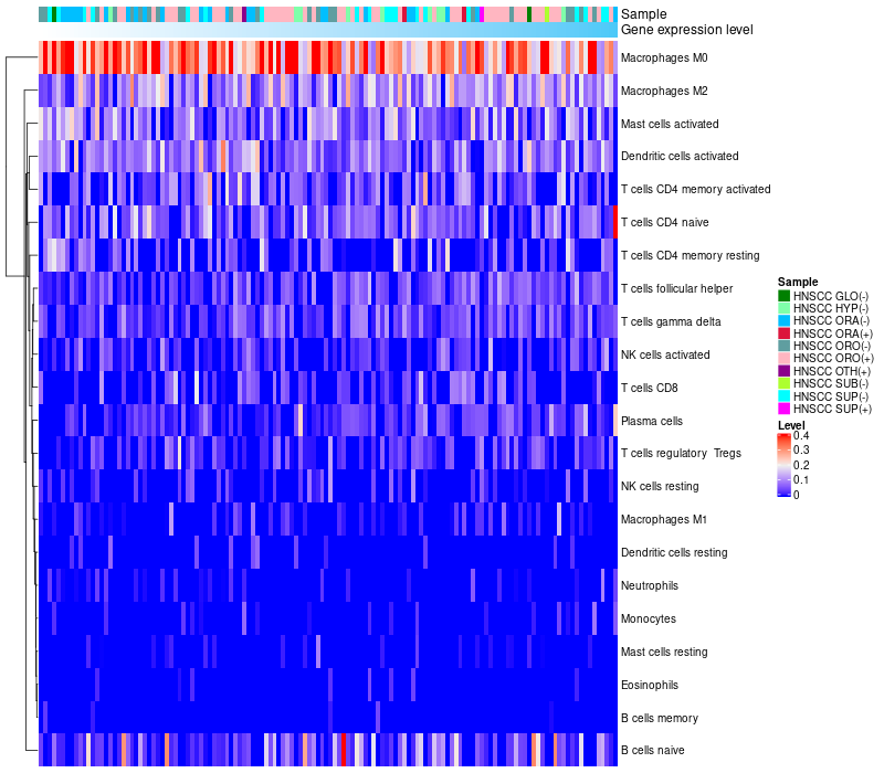 Head and Neck squamous cell carcinoma(HPV-)(483),Head and Neck squamous cell carcinoma(HPV+)(39),Paracancerous(HPV-)(44) |