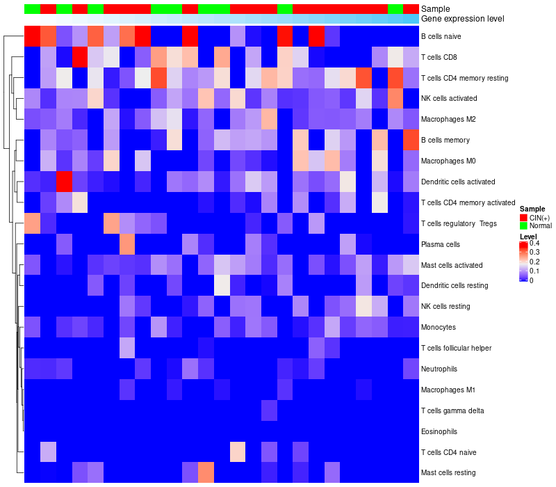Normal (10), Cervical intraepithelial neoplasia (HPV+)(15) |
