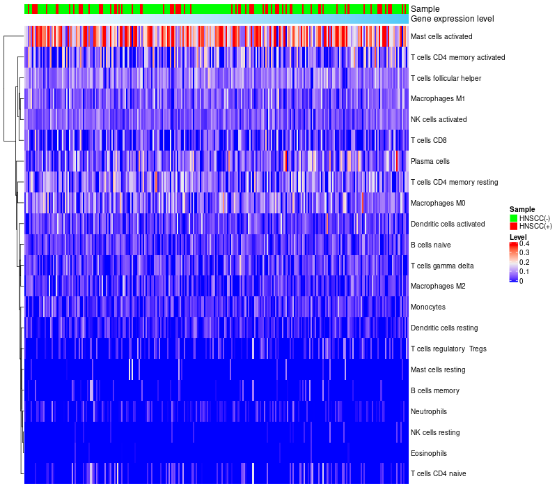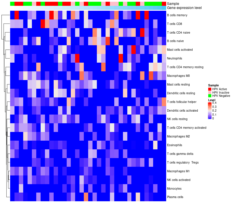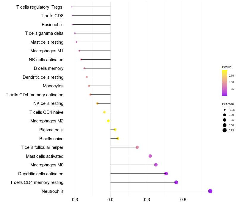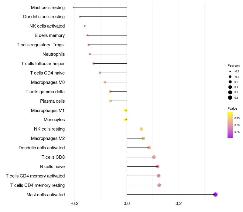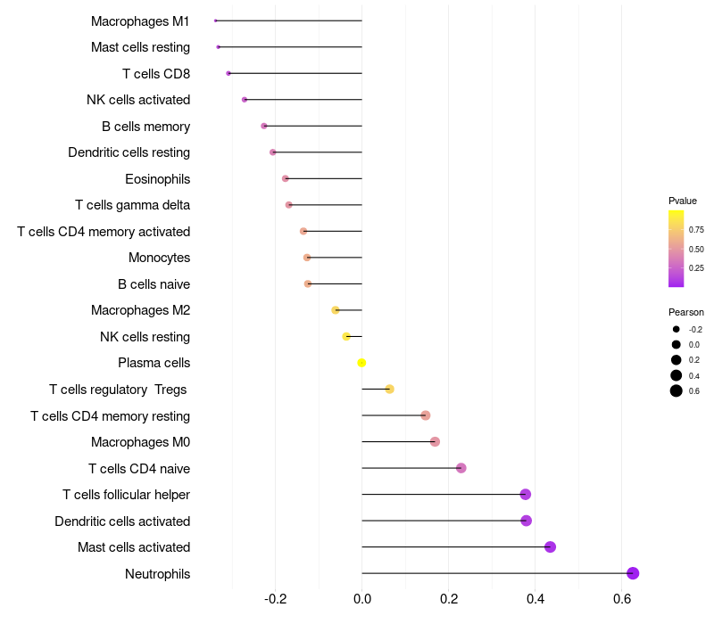 Lollipop of PNLDC1 expression and immune infiltrating cell level correlation result in HPV+ samples
