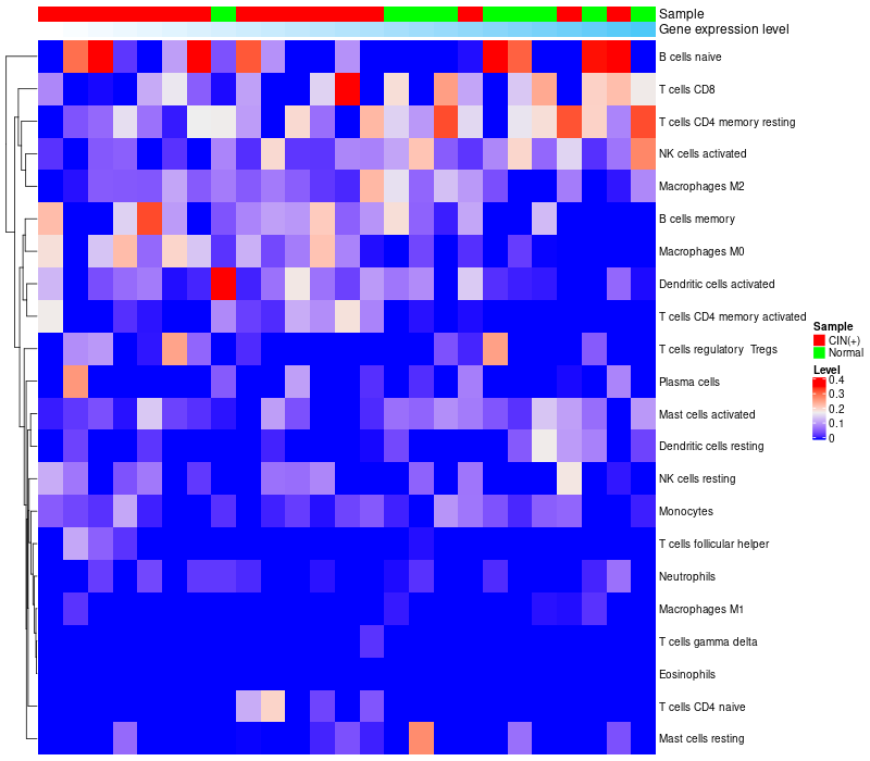 Normal (10), Cervical intraepithelial neoplasia (HPV+)(15) |