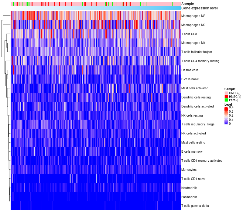 Head and Neck squamous cell carcinoma(HPV-)(483),Head and Neck squamous cell carcinoma(HPV+)(39),Paracancerous(HPV-)(44) |