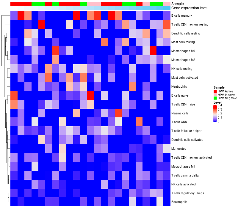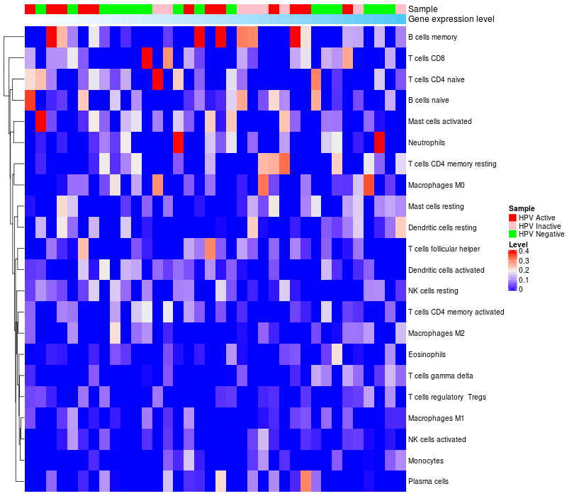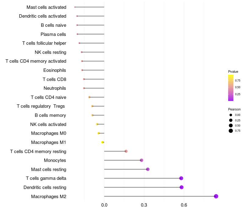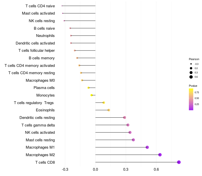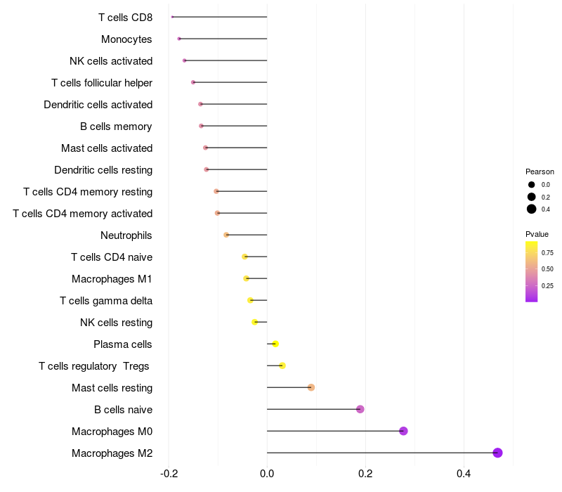 Lollipop of PPP1R3A expression and immune infiltrating cell level correlation result in HPV+ samples