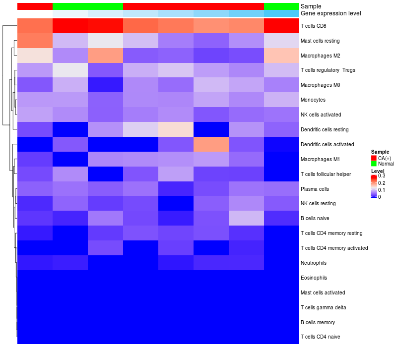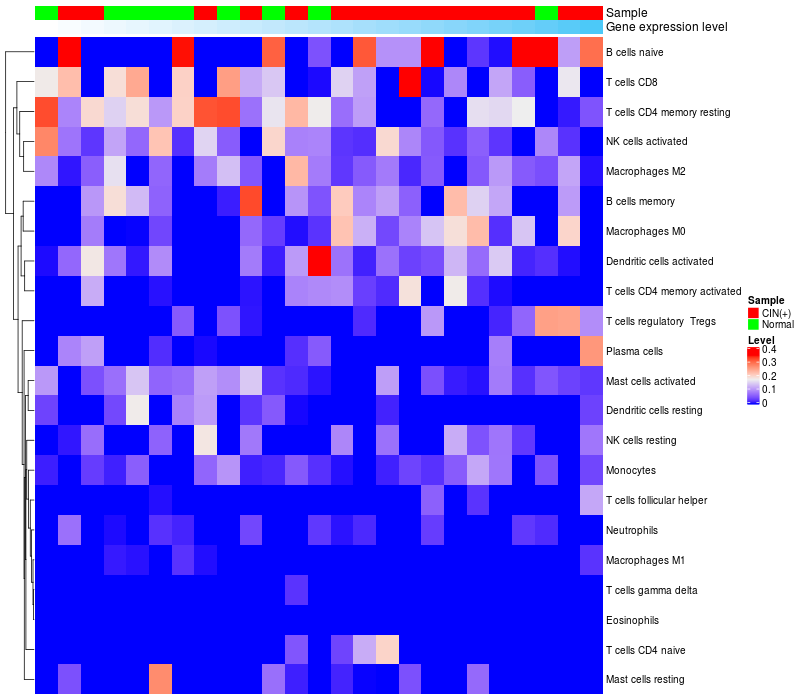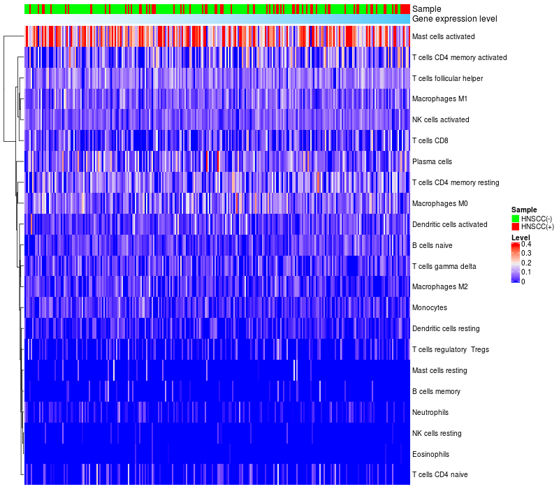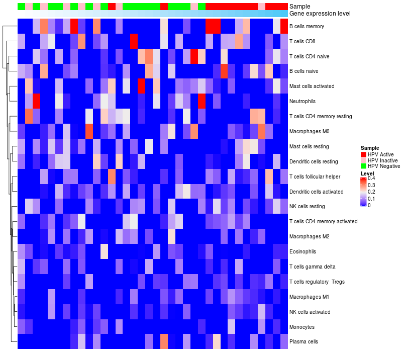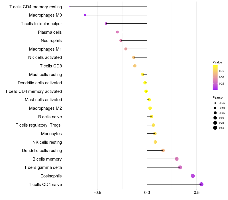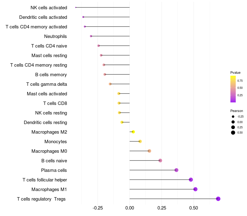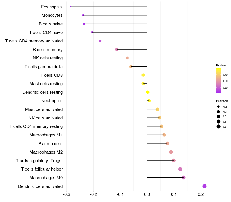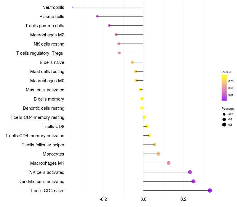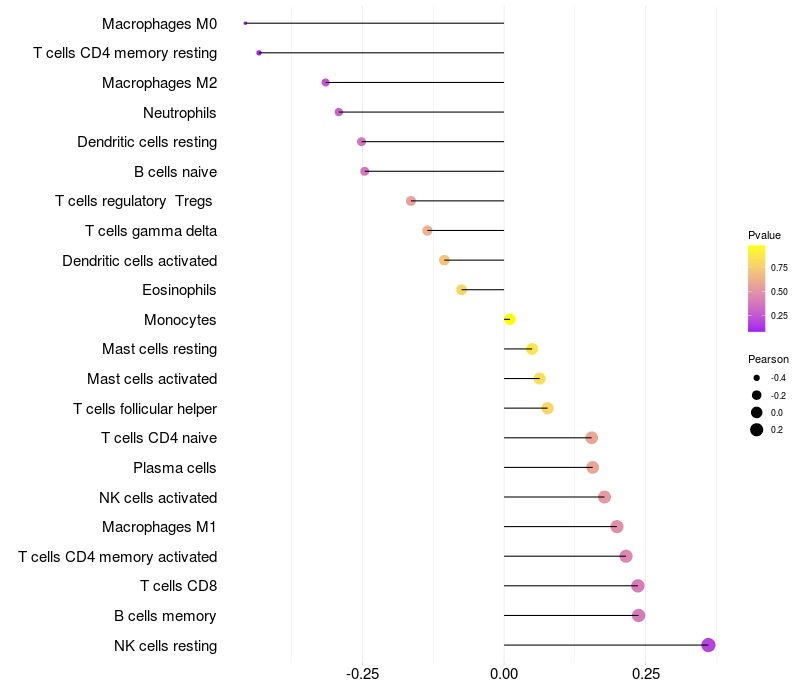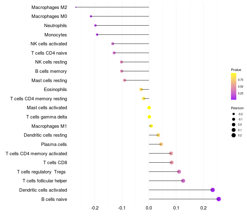 Lollipop of PRELID2 expression and immune infiltrating cell level correlation result in HPV+ samples