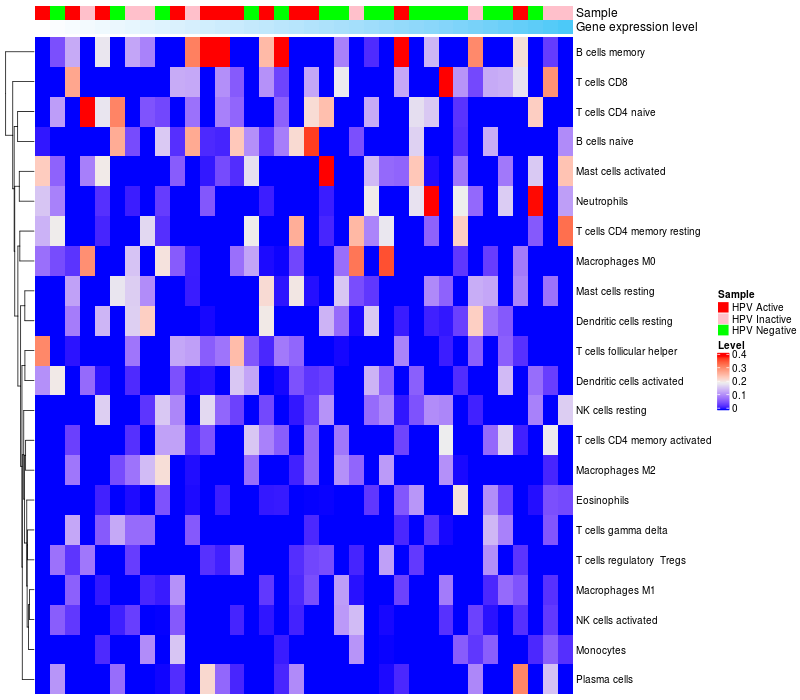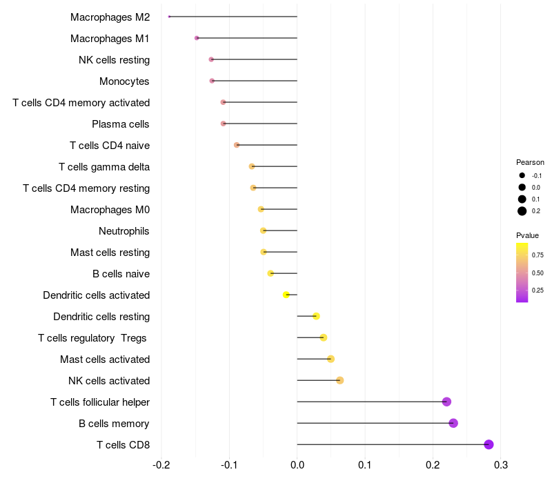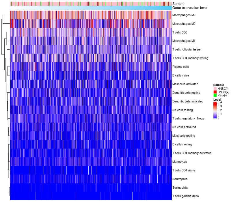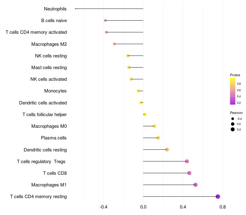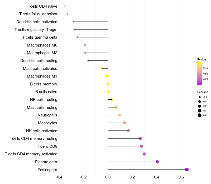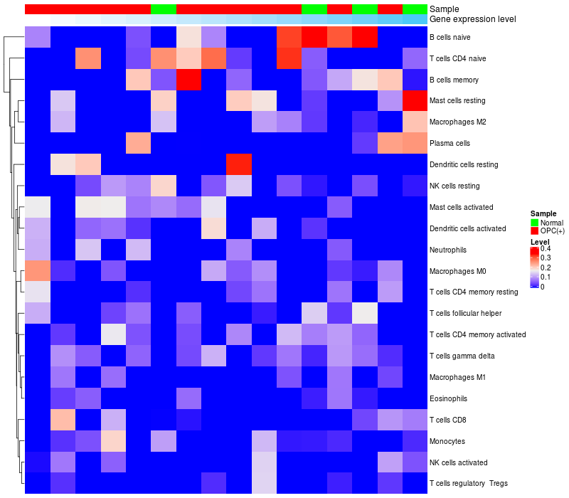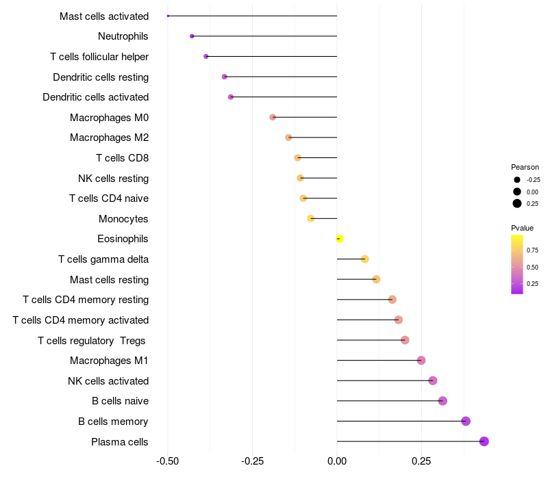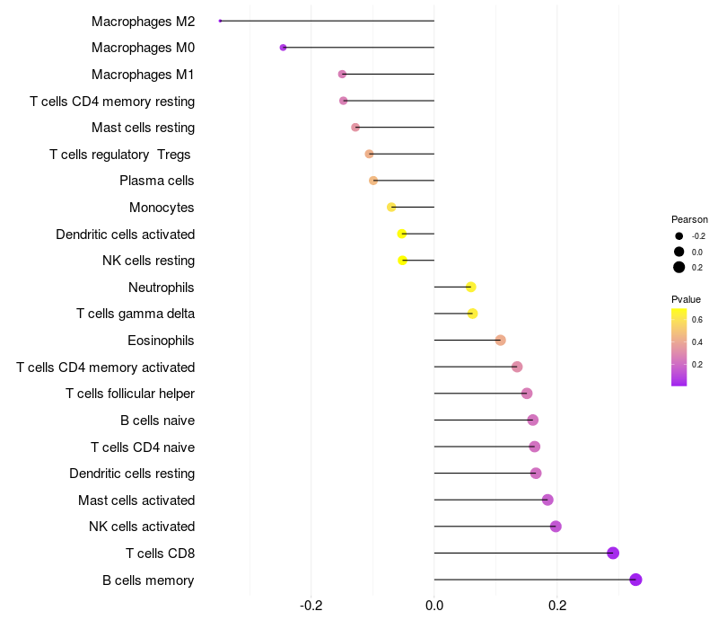 Relationship between gene expression and immune infiltrating cell level