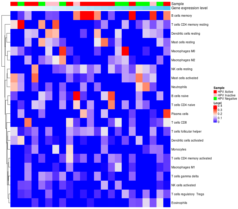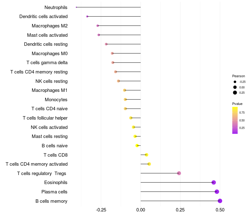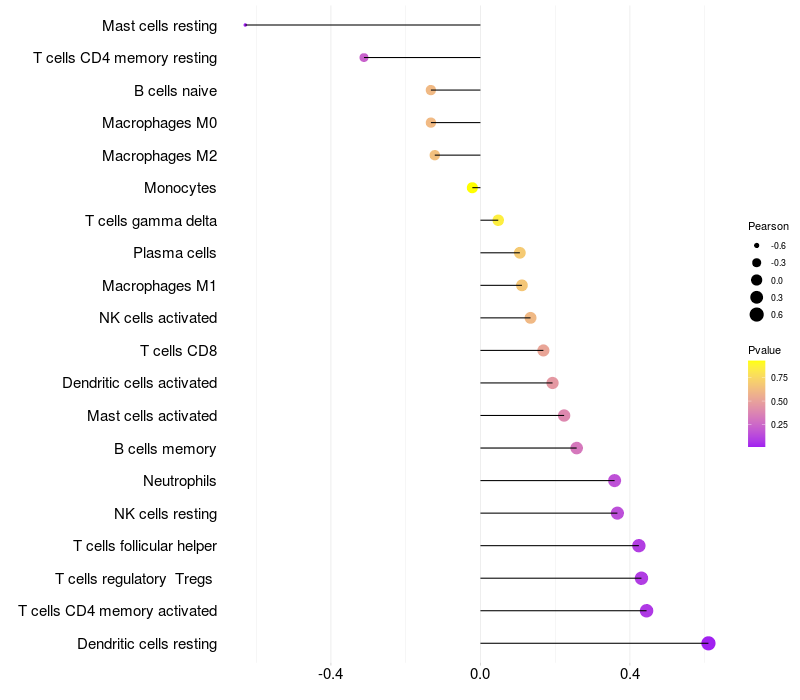 HeatMap of cell type fractions in all samples Lollipop of PRLHR expression and immune infiltrating cell level correlation result in HPV+ samples
