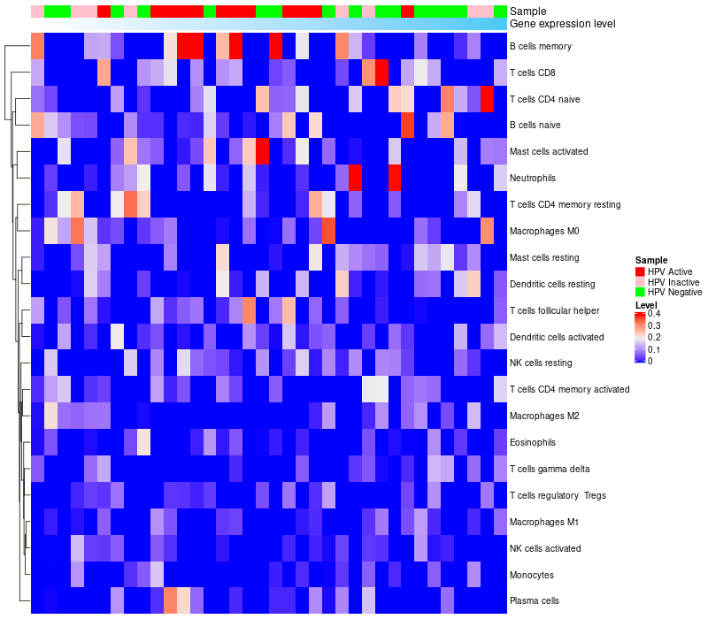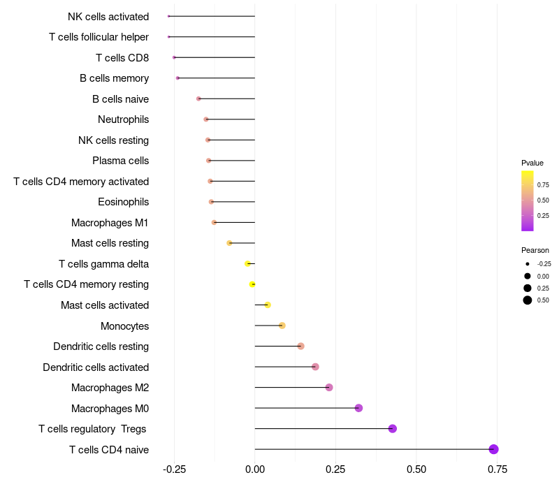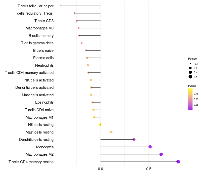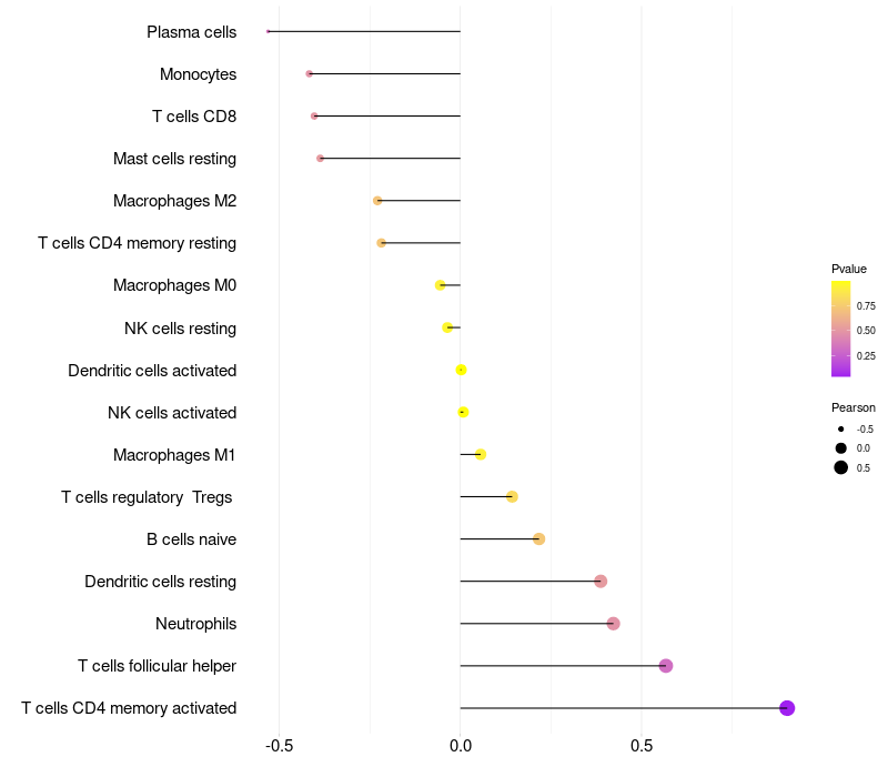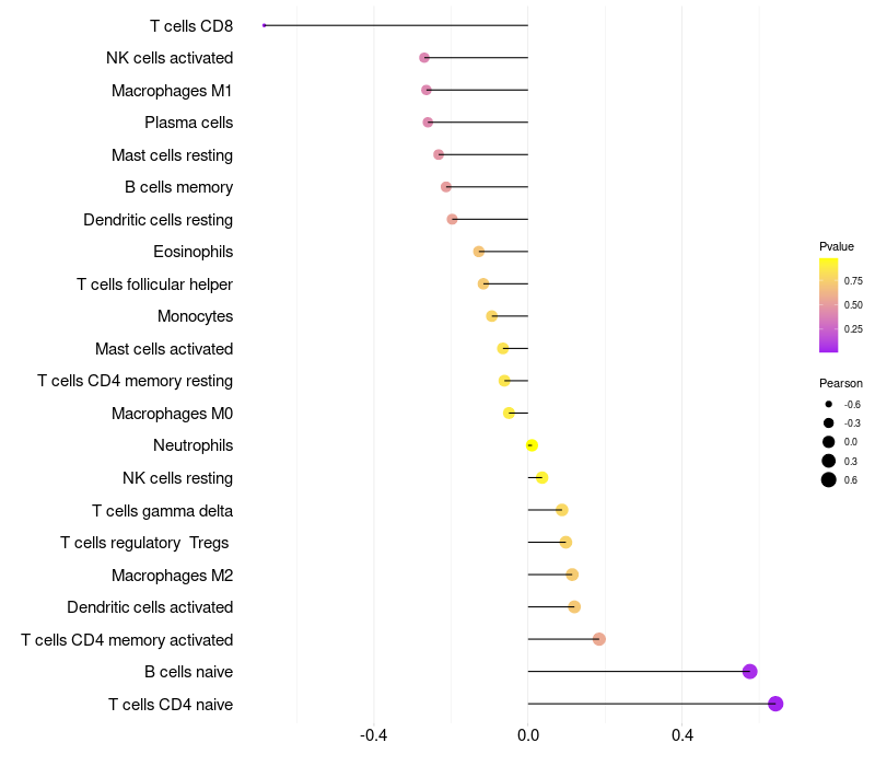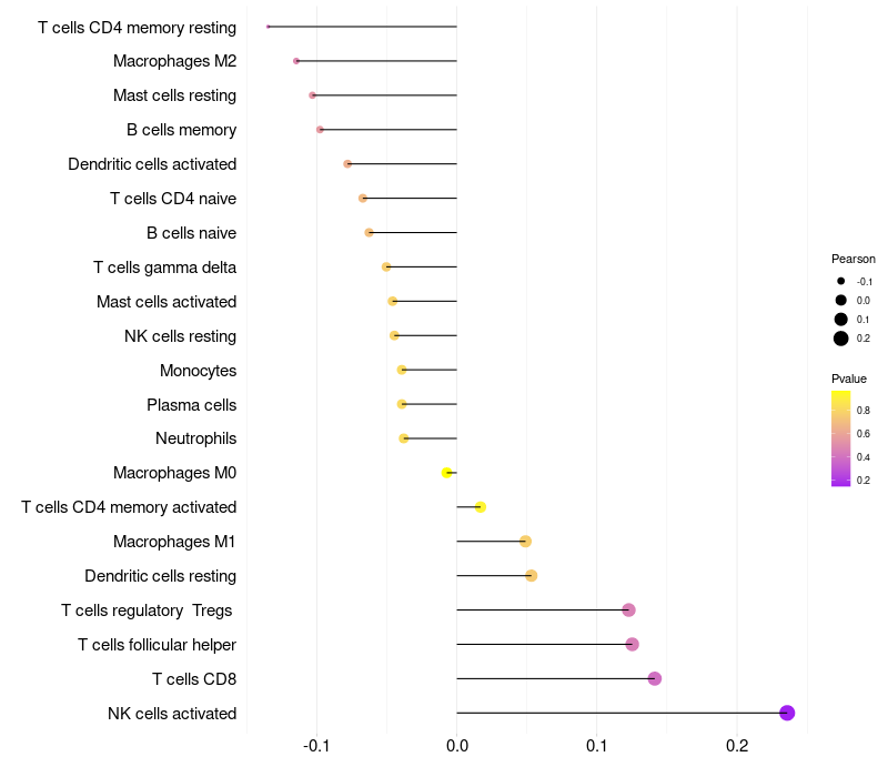 Lollipop of PRSS54 expression and immune infiltrating cell level correlation result in HPV+ samples