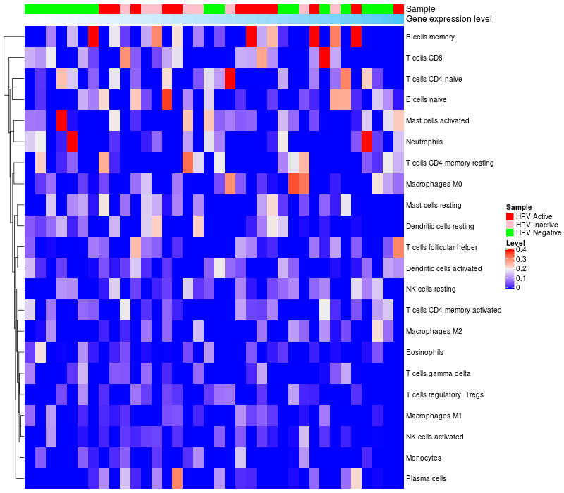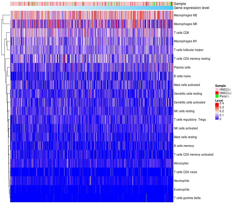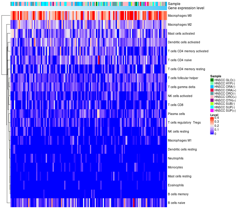Head and Neck squamous cell carcinoma(HPV-)(483),Head and Neck squamous cell carcinoma(HPV+)(39),Paracancerous(HPV-)(44) |