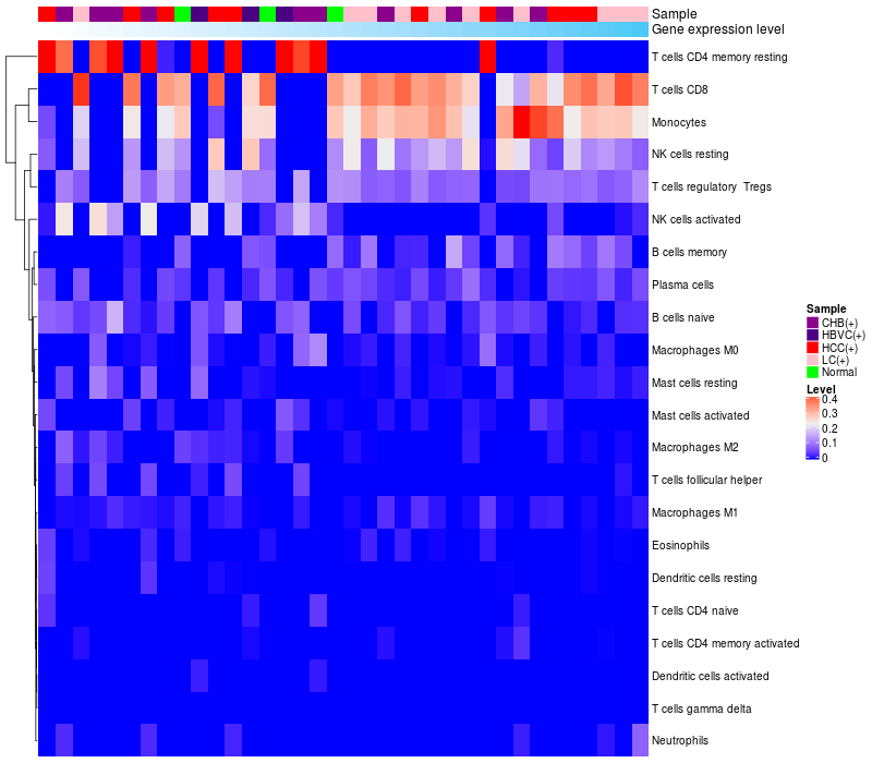 Lollipop of R3HDM2 expression and immune infiltrating cell level correlation result in HBV+ Hepatocellular carcinoma samples