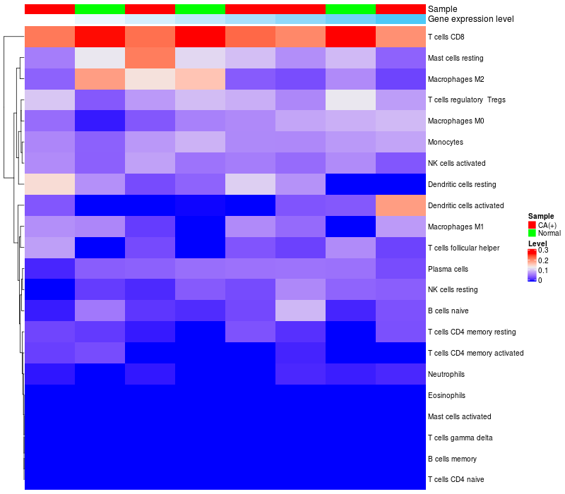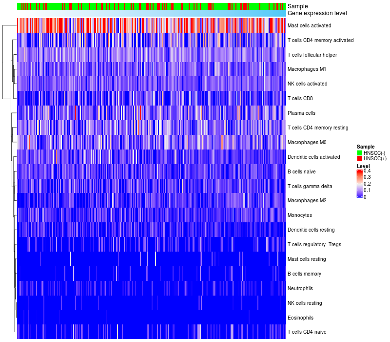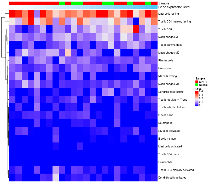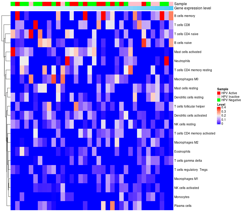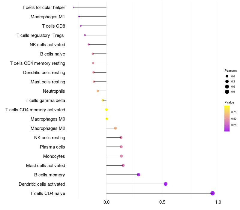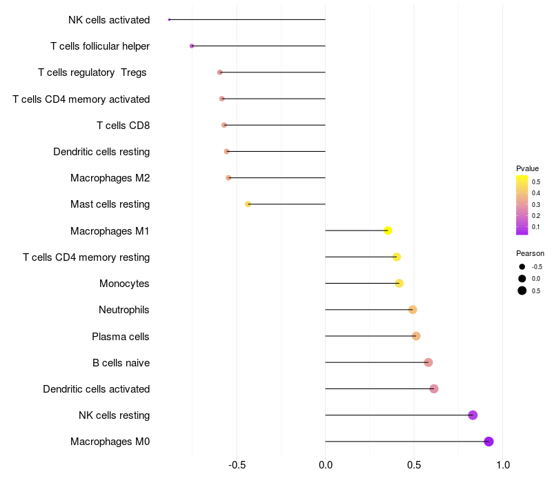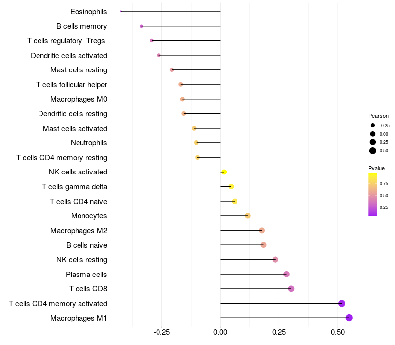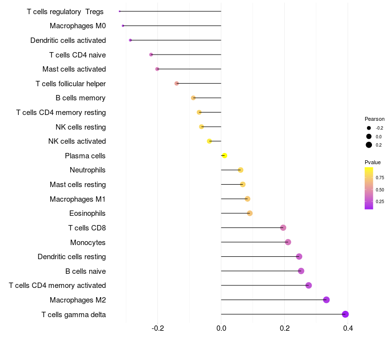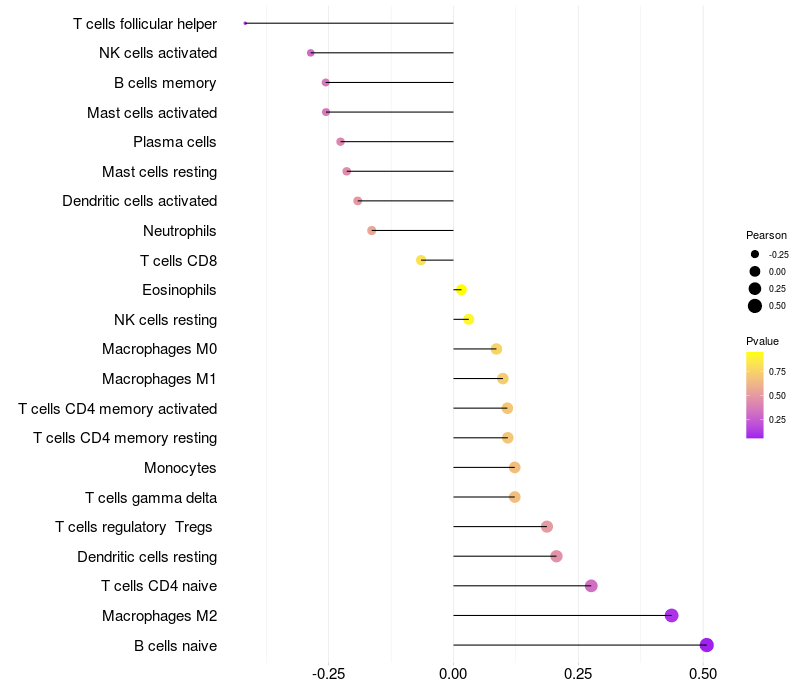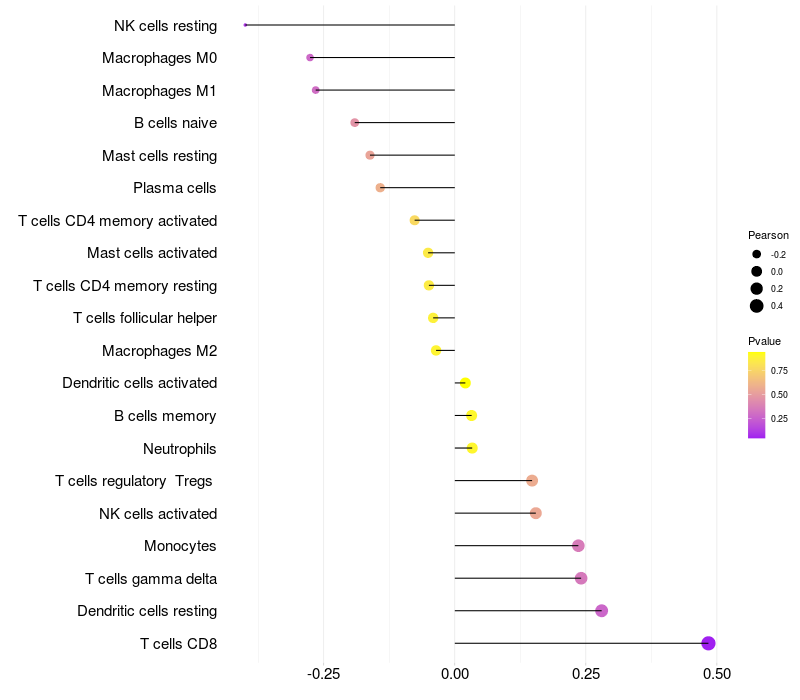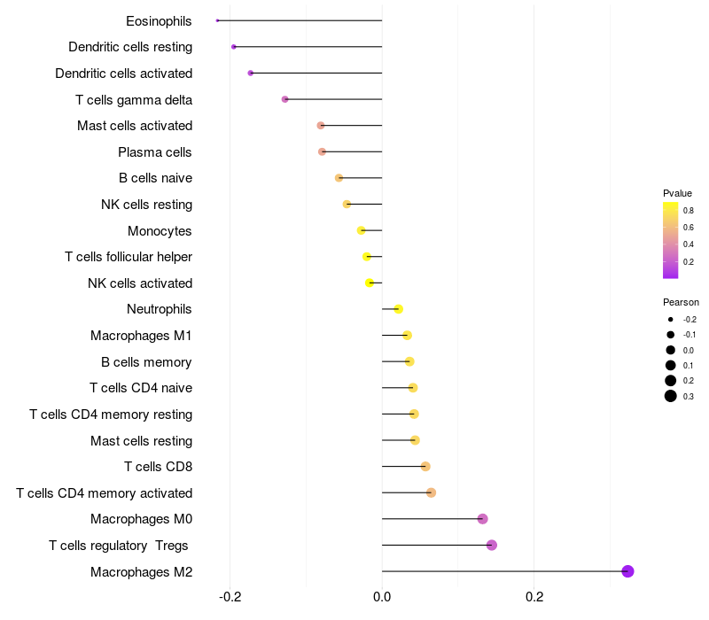 Lollipop of RAB3C expression and immune infiltrating cell level correlation result in HPV+ samples