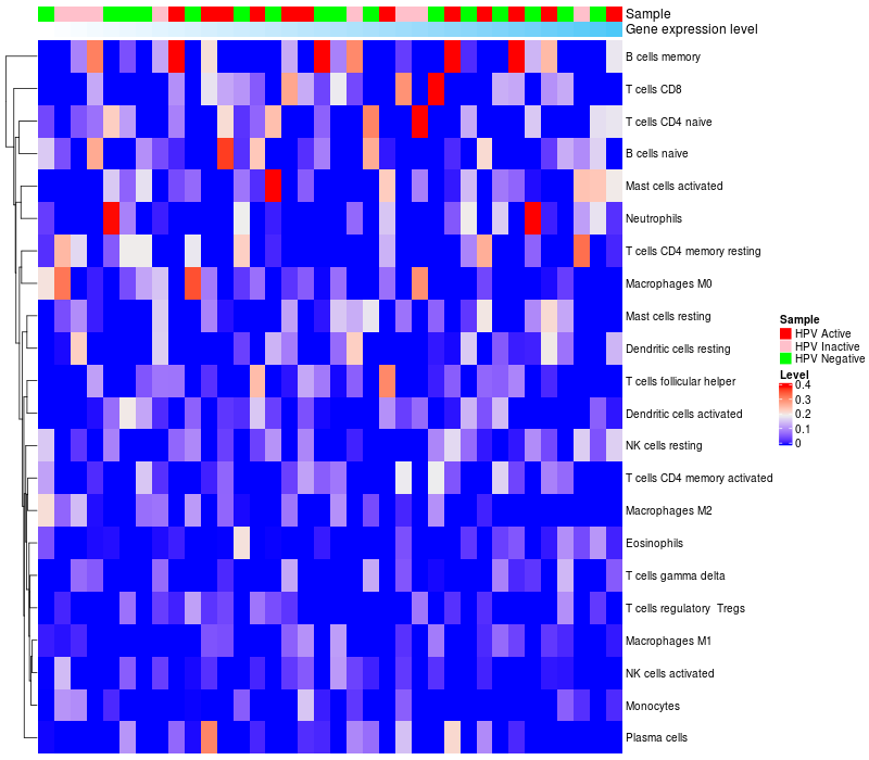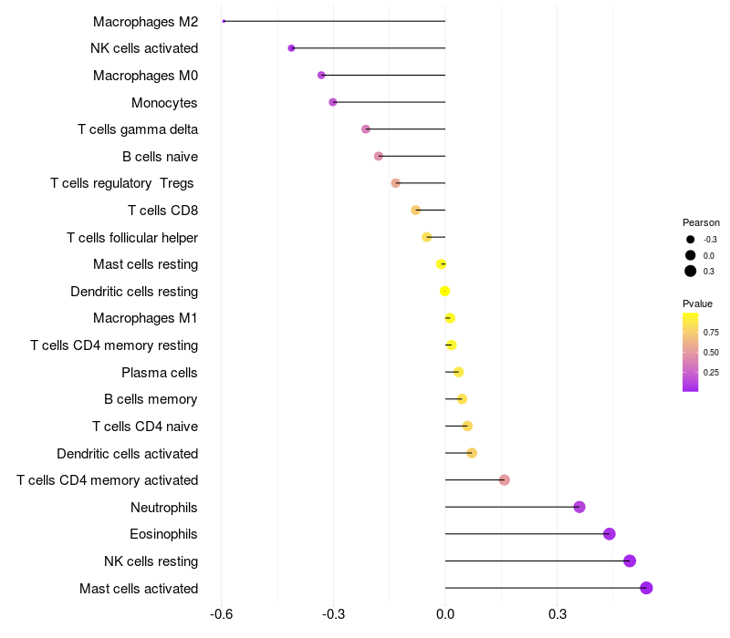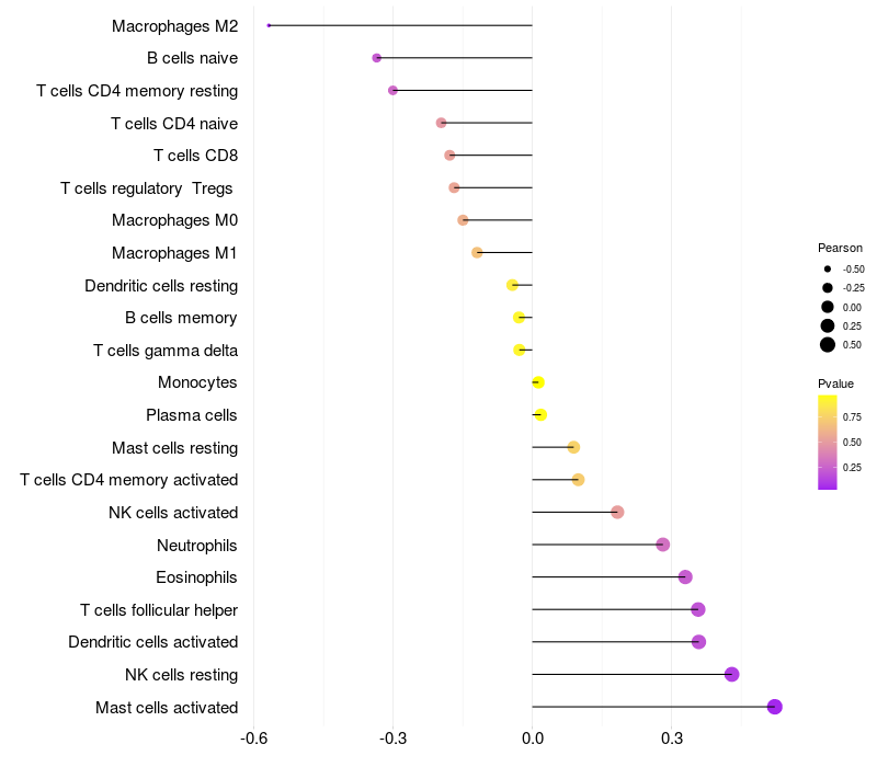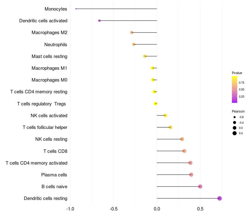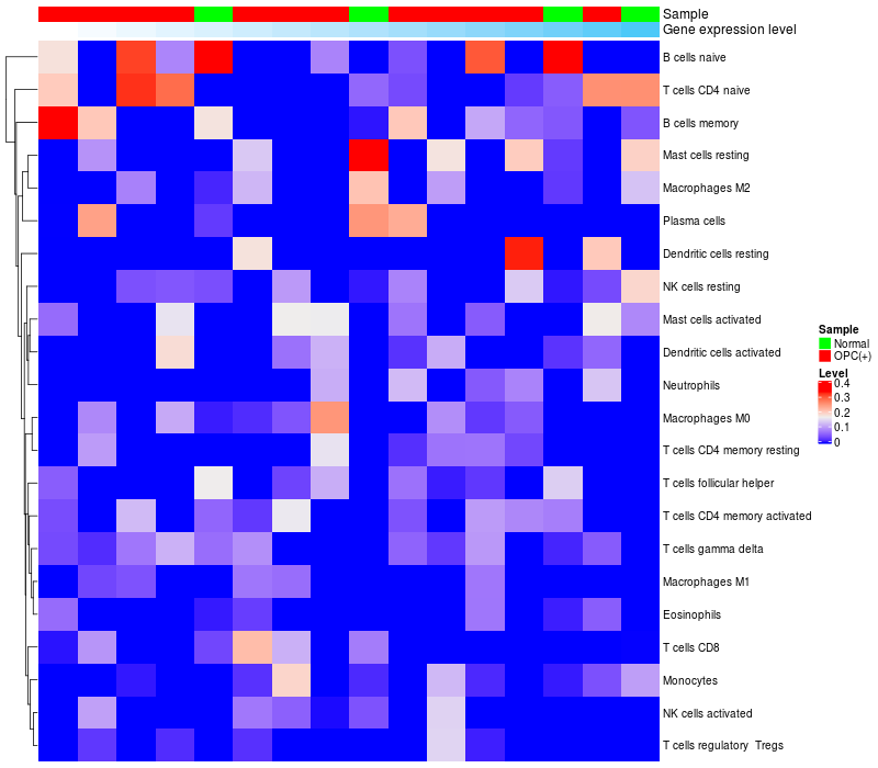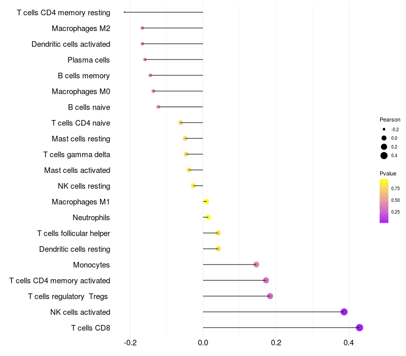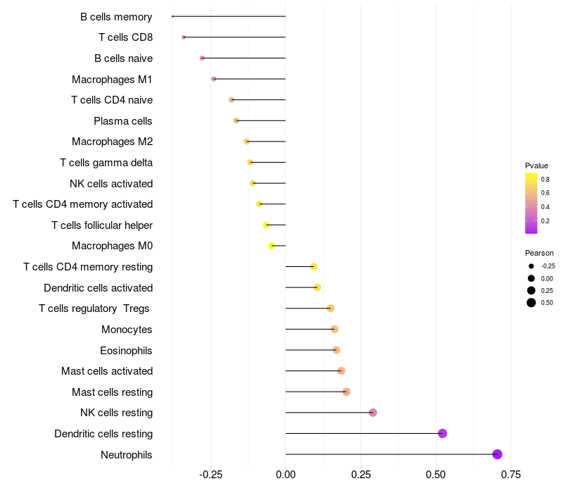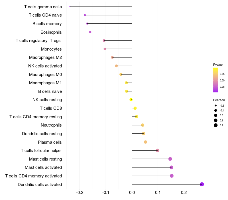 Relationship between gene expression and immune infiltrating cell level