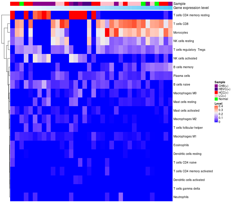 Relationship between gene expression and immune infiltrating cell level
