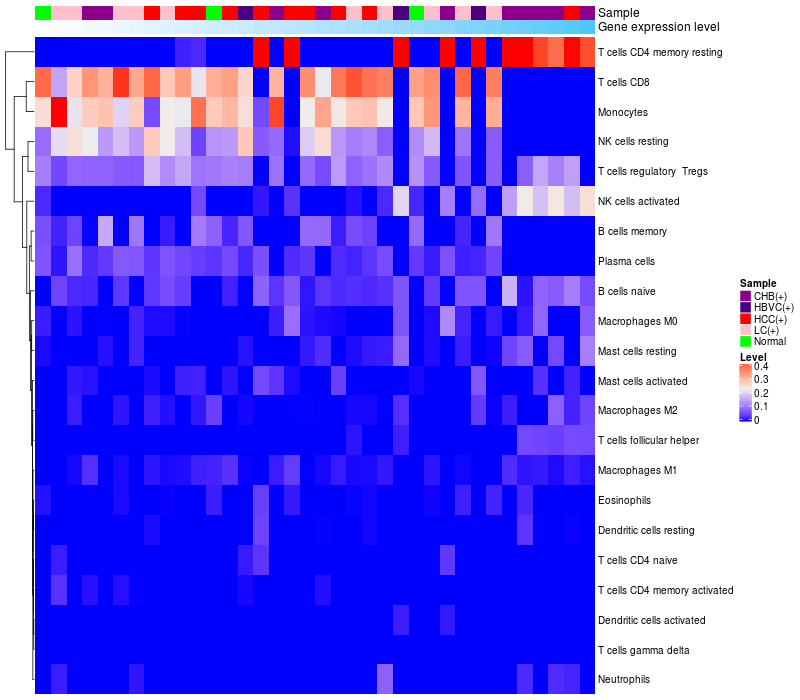 Relationship between gene expression and immune infiltrating cell level