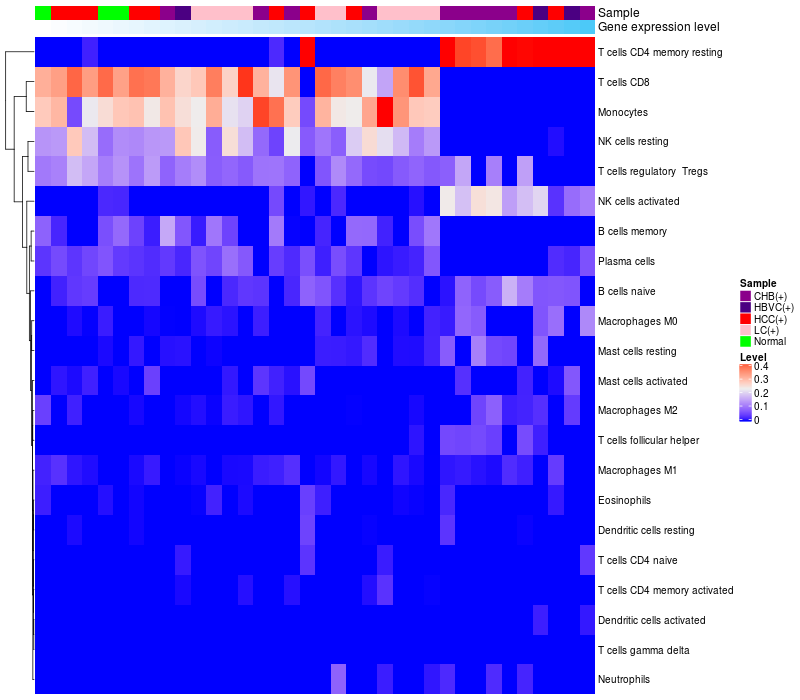 Liver hepatocellular carcinoma HCV (HBV+)(86), Liver hepatocellular carcinoma HCV (HBV-)(19), Liver hepatocellular carcinoma (HBV+)(209), Liver hepatocellular carcinoma (HBV+)(60), Paracancerous HCV (HBV+)(4), Paracancerous (HBV-)(28), Paracancerous (HBV+)(18) |