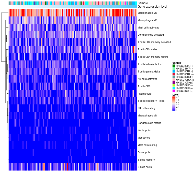 Head and Neck squamous cell carcinoma(HPV-)(483),Head and Neck squamous cell carcinoma(HPV+)(39),Paracancerous(HPV-)(44) |