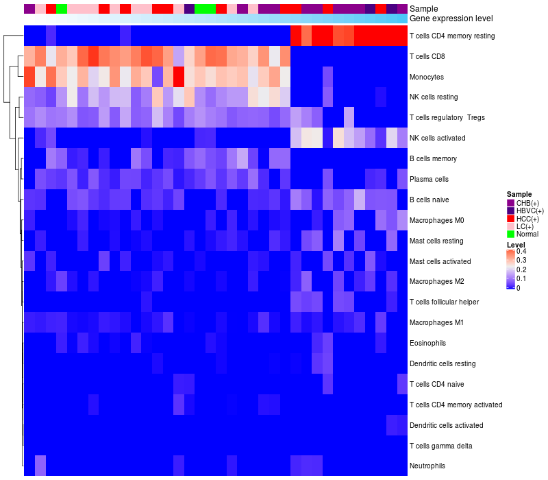 Liver hepatocellular carcinoma HCV (HBV+)(86), Liver hepatocellular carcinoma HCV (HBV-)(19), Liver hepatocellular carcinoma (HBV+)(209), Liver hepatocellular carcinoma (HBV+)(60), Paracancerous HCV (HBV+)(4), Paracancerous (HBV-)(28), Paracancerous (HBV+)(18) |