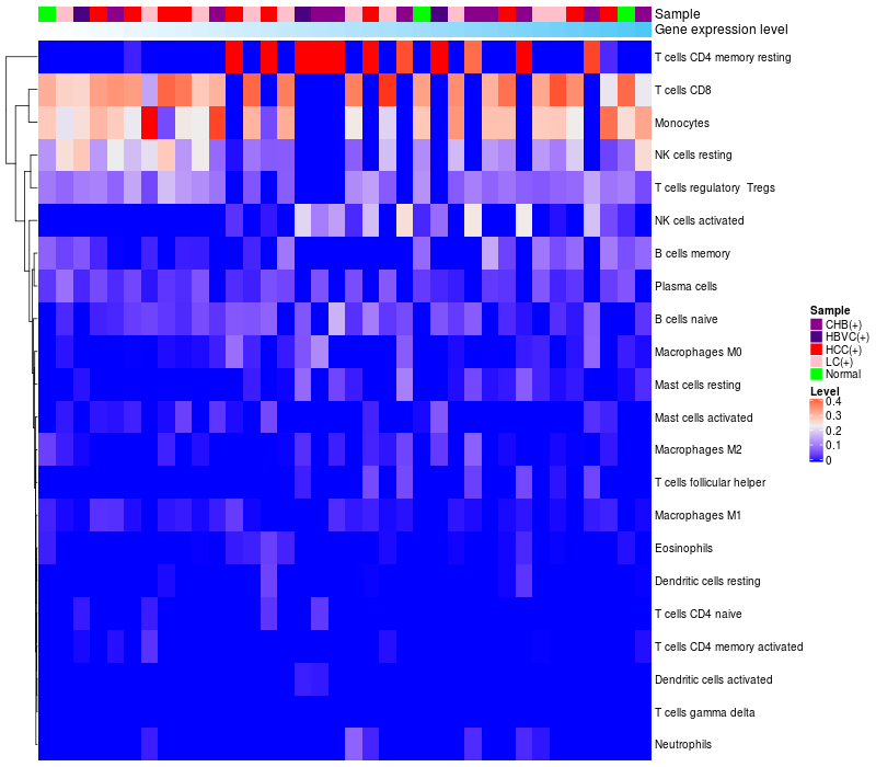 Liver hepatocellular carcinoma HCV (HBV+)(86), Liver hepatocellular carcinoma HCV (HBV-)(19), Liver hepatocellular carcinoma (HBV+)(209), Liver hepatocellular carcinoma (HBV+)(60), Paracancerous HCV (HBV+)(4), Paracancerous (HBV-)(28), Paracancerous (HBV+)(18) |