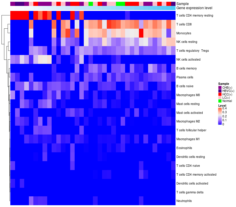 Relationship between gene expression and immune infiltrating cell level
