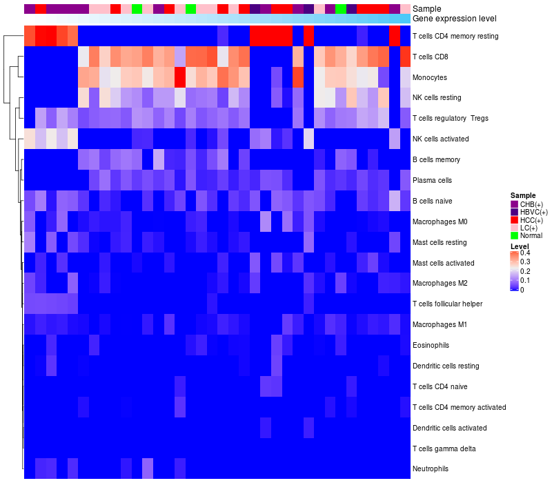 Relationship between gene expression and immune infiltrating cell level