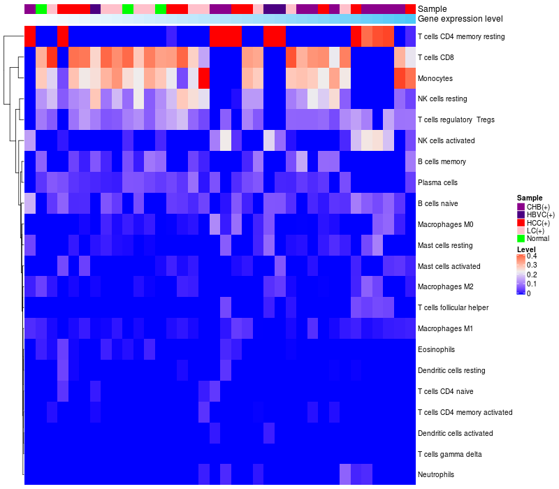 Relationship between gene expression and immune infiltrating cell level