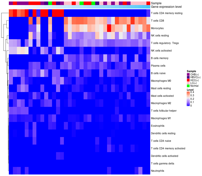 Liver hepatocellular carcinoma HCV (HBV+)(86), Liver hepatocellular carcinoma HCV (HBV-)(19), Liver hepatocellular carcinoma (HBV+)(209), Liver hepatocellular carcinoma (HBV+)(60), Paracancerous HCV (HBV+)(4), Paracancerous (HBV-)(28), Paracancerous (HBV+)(18) |