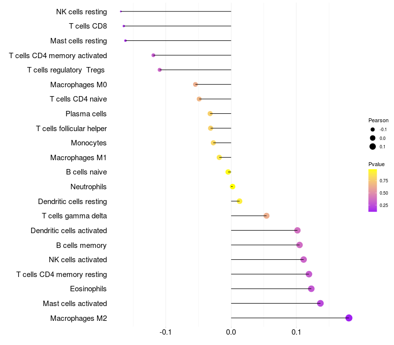 Lollipop of RLIM expression and immune infiltrating cell level correlation result in HBV+ samples