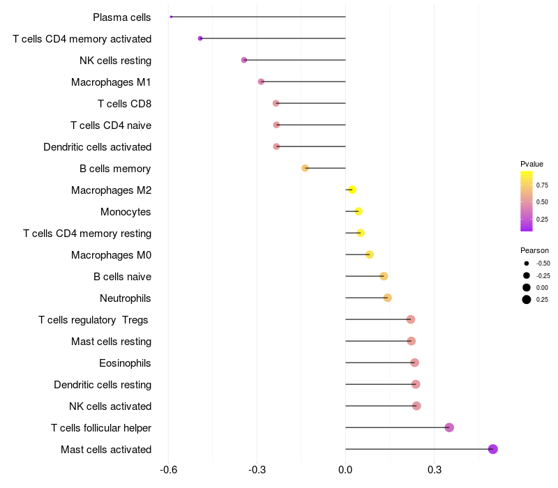 Lollipop of RNF10 expression and immune infiltrating cell level correlation result in HBV+ Liver cirrhosis samples