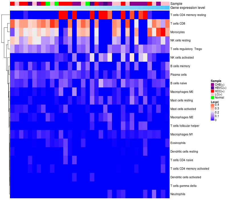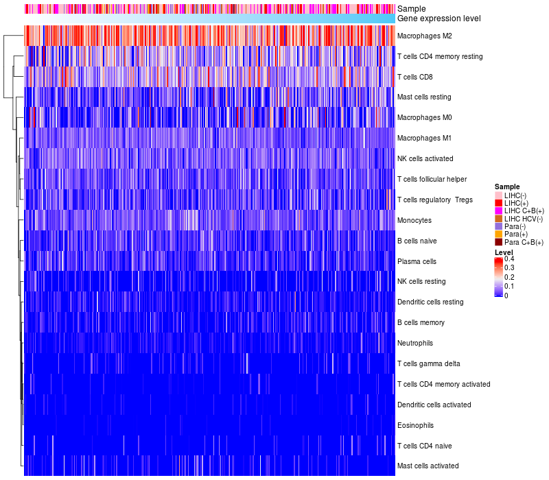 Liver hepatocellular carcinoma HCV (HBV+)(86), Liver hepatocellular carcinoma HCV (HBV-)(19), Liver hepatocellular carcinoma (HBV+)(209), Liver hepatocellular carcinoma (HBV+)(60), Paracancerous HCV (HBV+)(4), Paracancerous (HBV-)(28), Paracancerous (HBV+)(18) |
