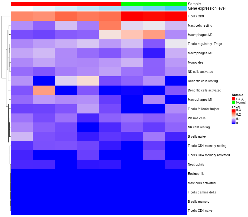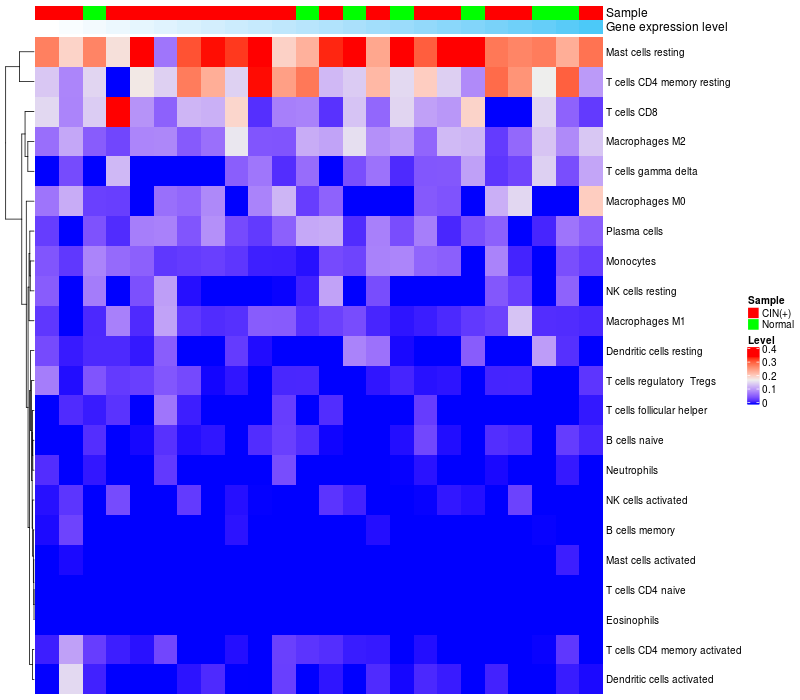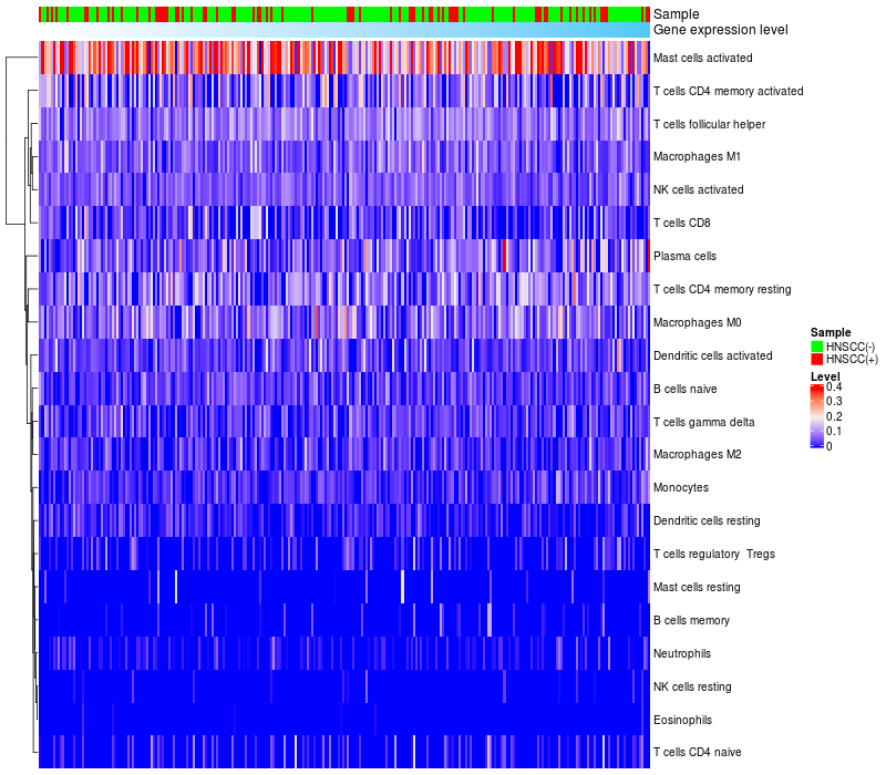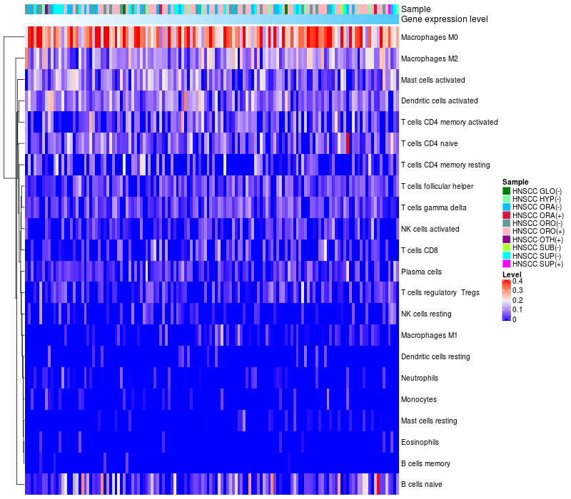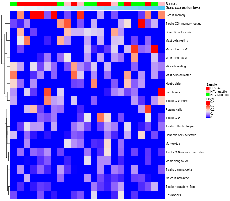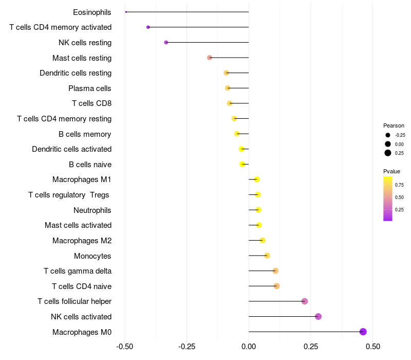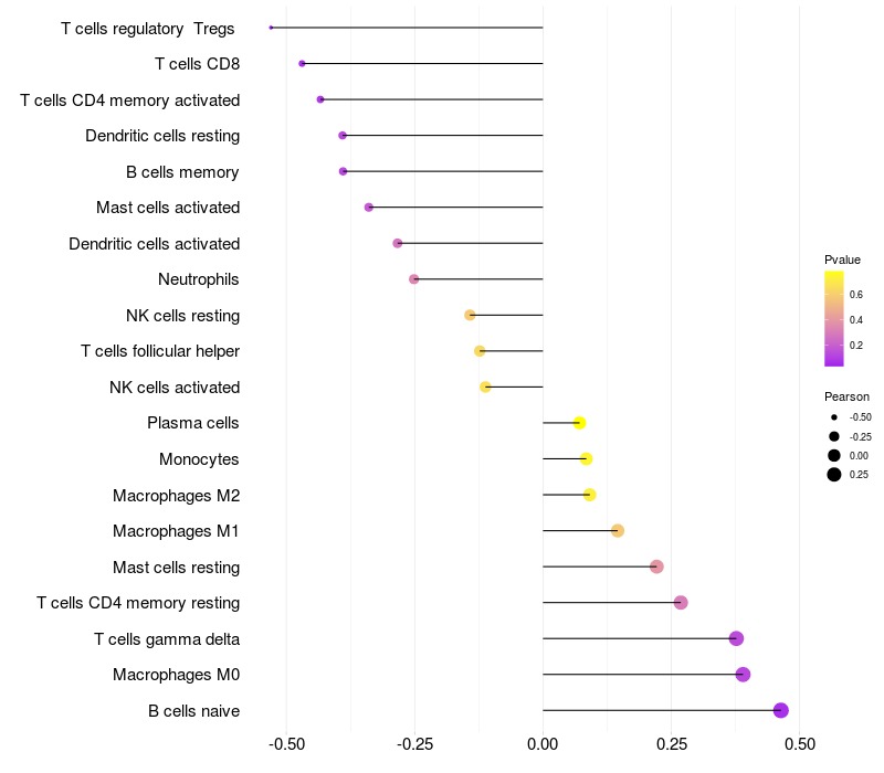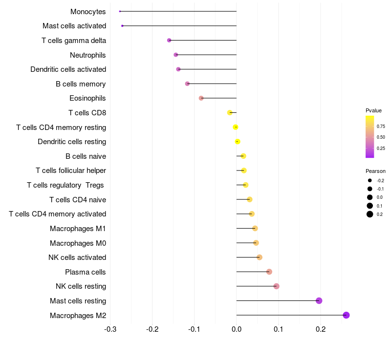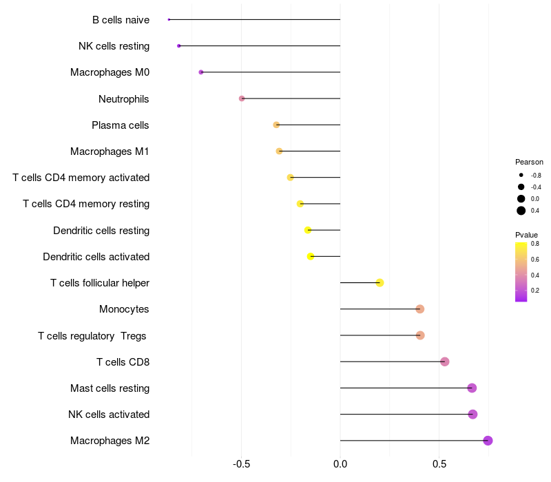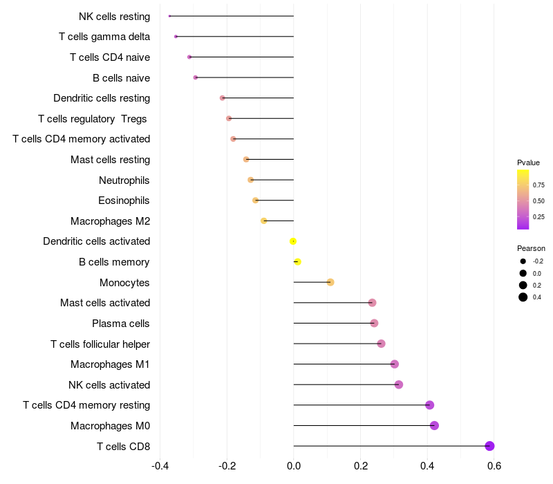 Lollipop of RNF180 expression and immune infiltrating cell level correlation result in HPV+ samples