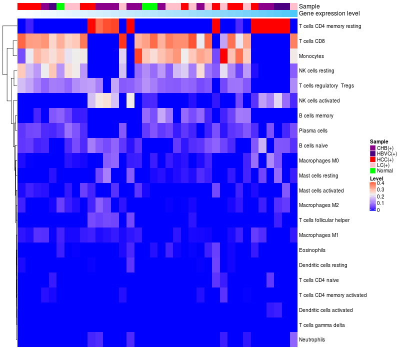 Relationship between gene expression and immune infiltrating cell level