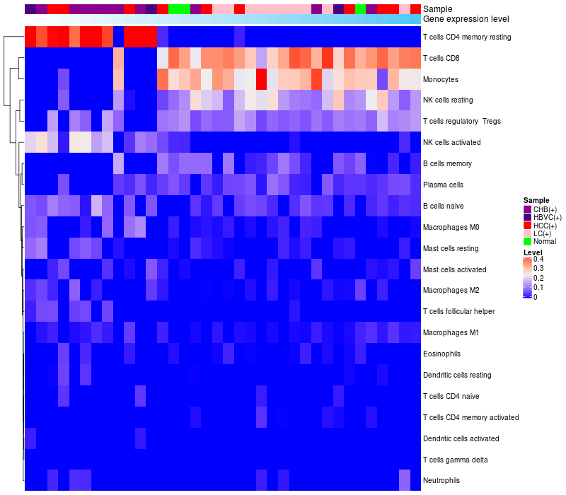 Liver hepatocellular carcinoma HCV (HBV+)(86), Liver hepatocellular carcinoma HCV (HBV-)(19), Liver hepatocellular carcinoma (HBV+)(209), Liver hepatocellular carcinoma (HBV+)(60), Paracancerous HCV (HBV+)(4), Paracancerous (HBV-)(28), Paracancerous (HBV+)(18) |