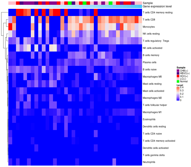 Relationship between gene expression and immune infiltrating cell level