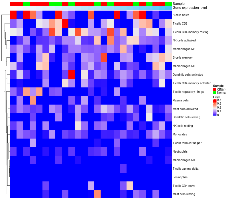 Normal (10), Cervical intraepithelial neoplasia (HPV+)(15) |