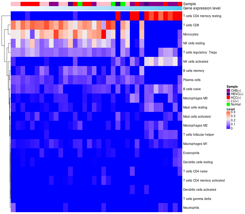 Liver hepatocellular carcinoma HCV (HBV+)(86), Liver hepatocellular carcinoma HCV (HBV-)(19), Liver hepatocellular carcinoma (HBV+)(209), Liver hepatocellular carcinoma (HBV+)(60), Paracancerous HCV (HBV+)(4), Paracancerous (HBV-)(28), Paracancerous (HBV+)(18) |