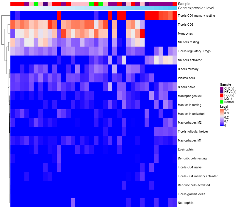 Liver hepatocellular carcinoma HCV (HBV+)(86), Liver hepatocellular carcinoma HCV (HBV-)(19), Liver hepatocellular carcinoma (HBV+)(209), Liver hepatocellular carcinoma (HBV+)(60), Paracancerous HCV (HBV+)(4), Paracancerous (HBV-)(28), Paracancerous (HBV+)(18) |