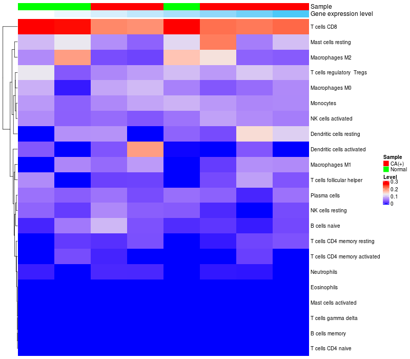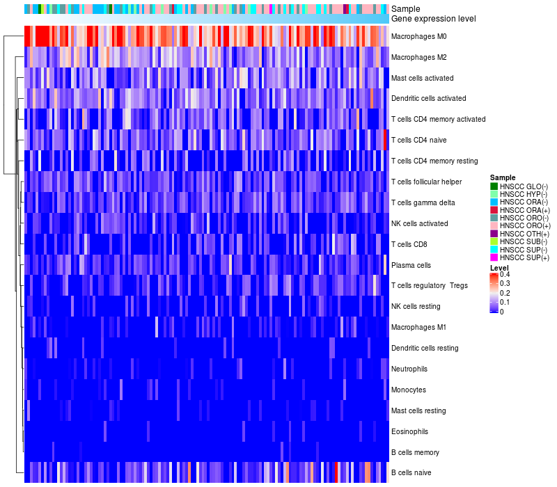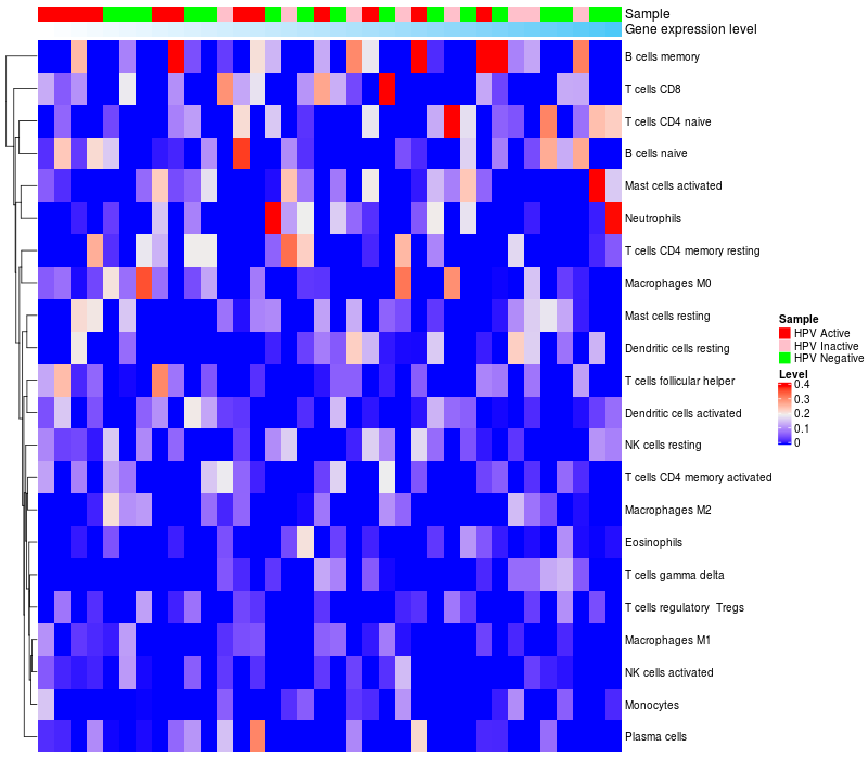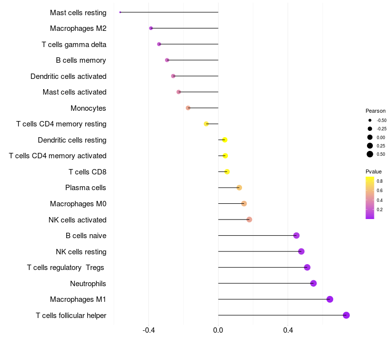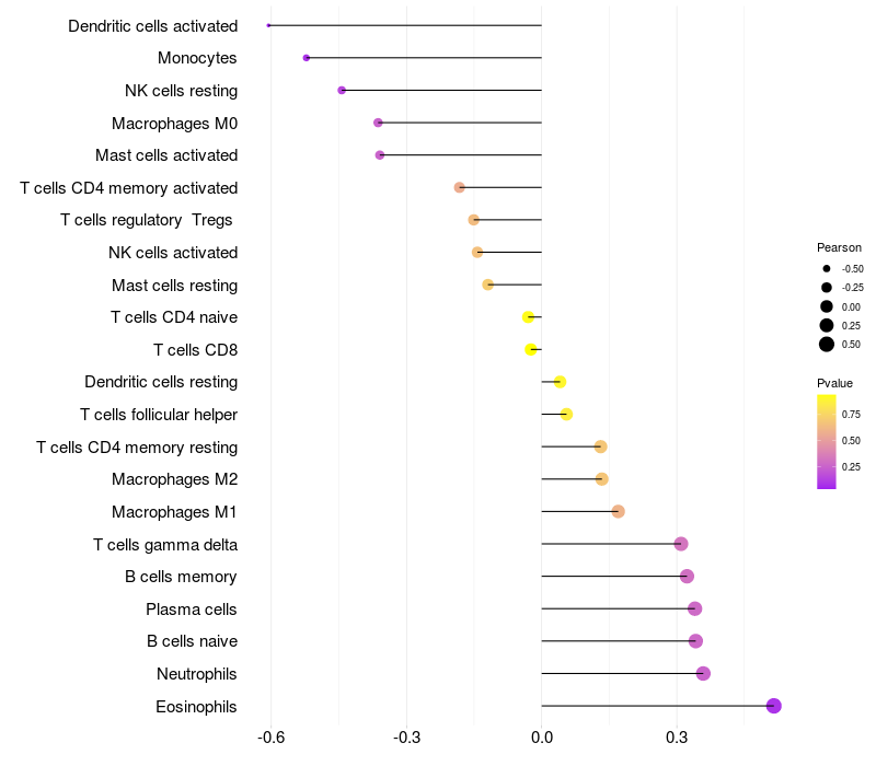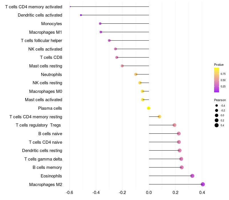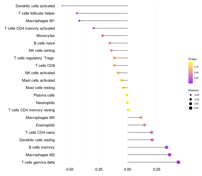Lollipop of RPS15A expression and immune infiltrating cell level correlation result in HPV+ samples