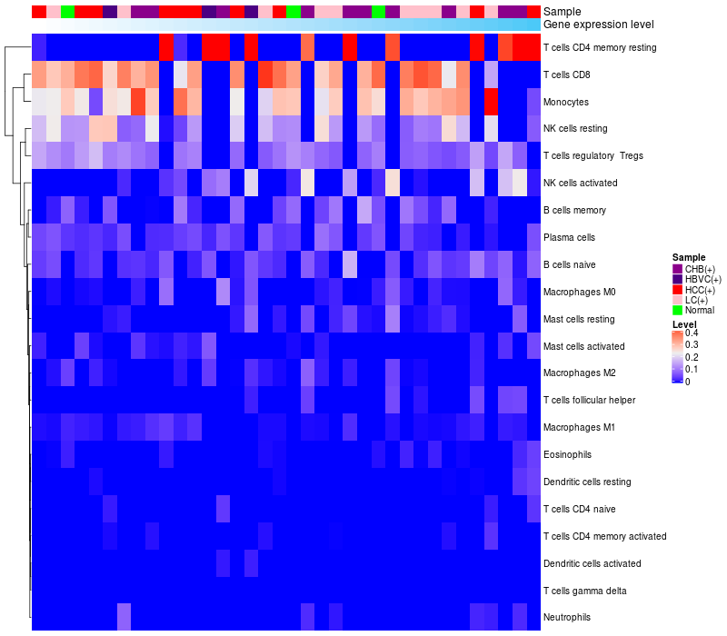 Liver hepatocellular carcinoma HCV (HBV+)(86), Liver hepatocellular carcinoma HCV (HBV-)(19), Liver hepatocellular carcinoma (HBV+)(209), Liver hepatocellular carcinoma (HBV+)(60), Paracancerous HCV (HBV+)(4), Paracancerous (HBV-)(28), Paracancerous (HBV+)(18) |