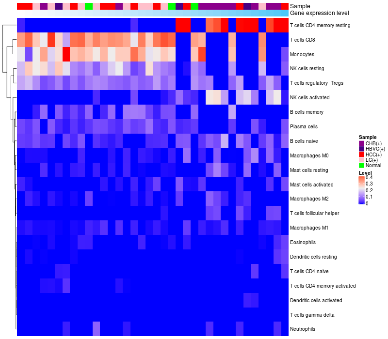 Relationship between gene expression and immune infiltrating cell level