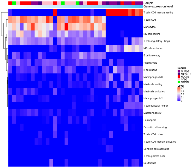 Liver hepatocellular carcinoma HCV (HBV+)(86), Liver hepatocellular carcinoma HCV (HBV-)(19), Liver hepatocellular carcinoma (HBV+)(209), Liver hepatocellular carcinoma (HBV+)(60), Paracancerous HCV (HBV+)(4), Paracancerous (HBV-)(28), Paracancerous (HBV+)(18) |