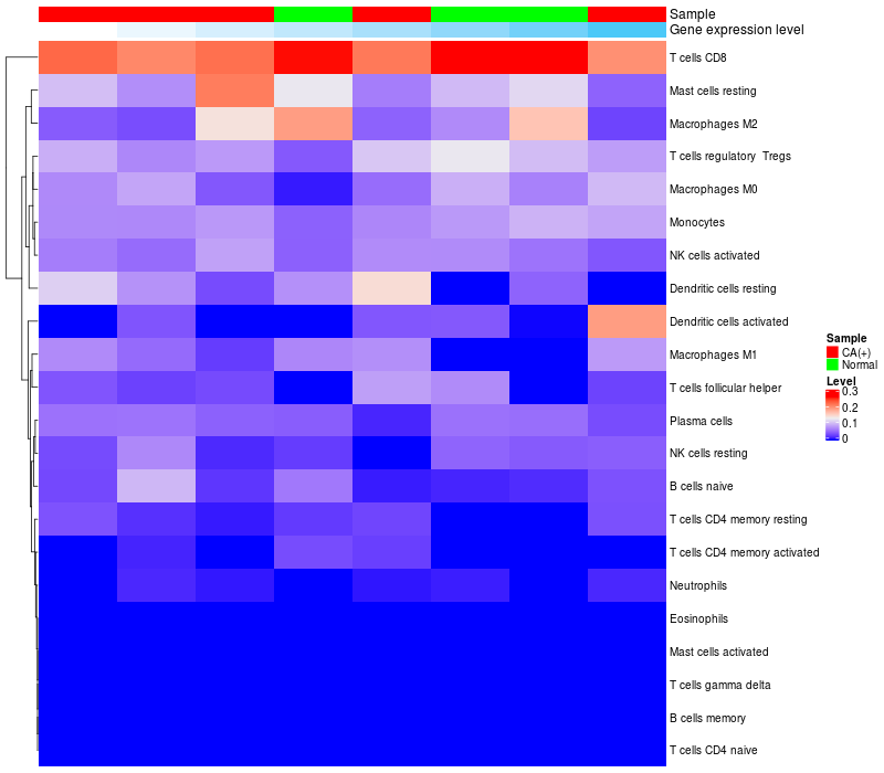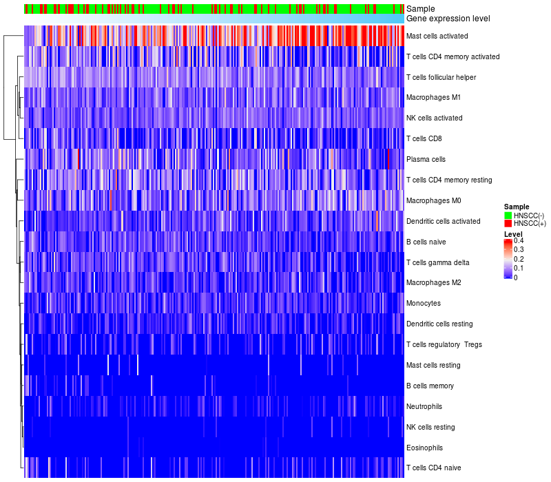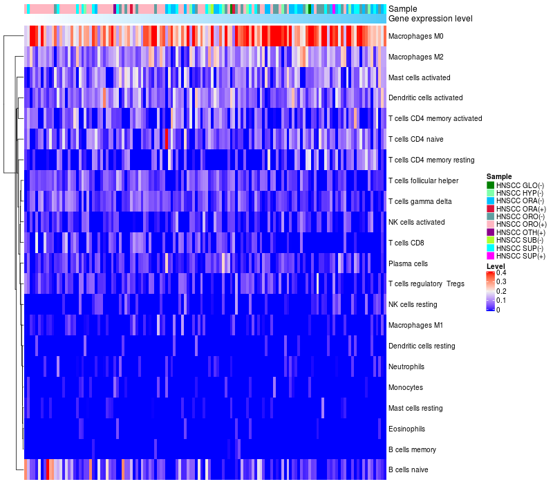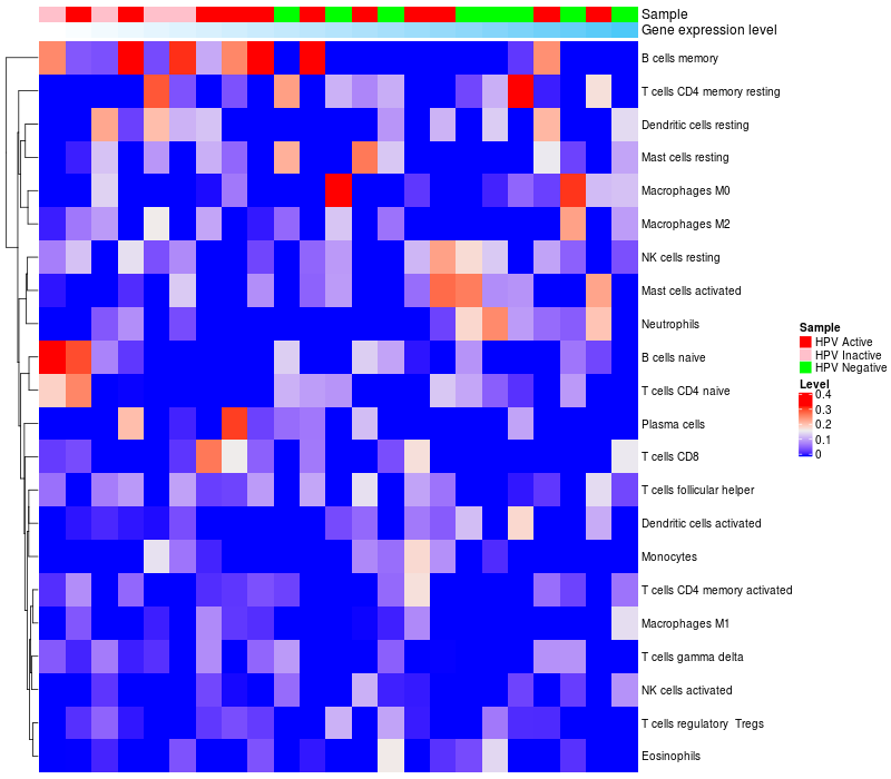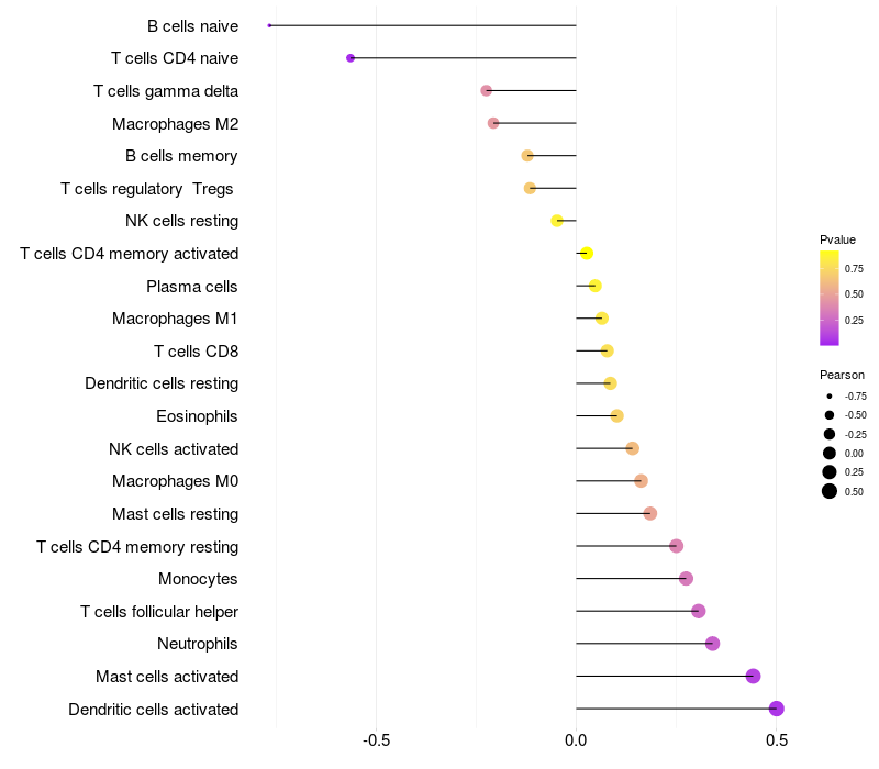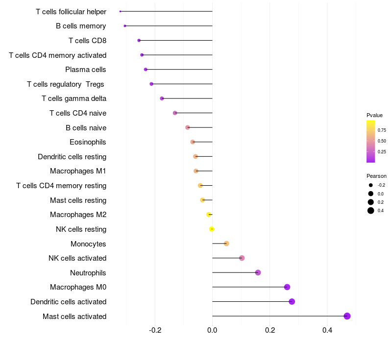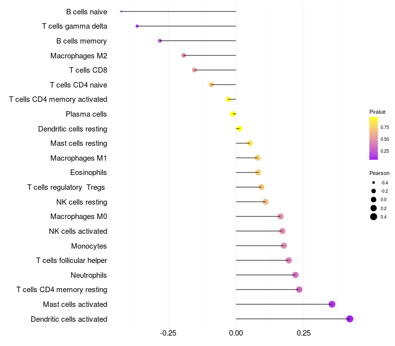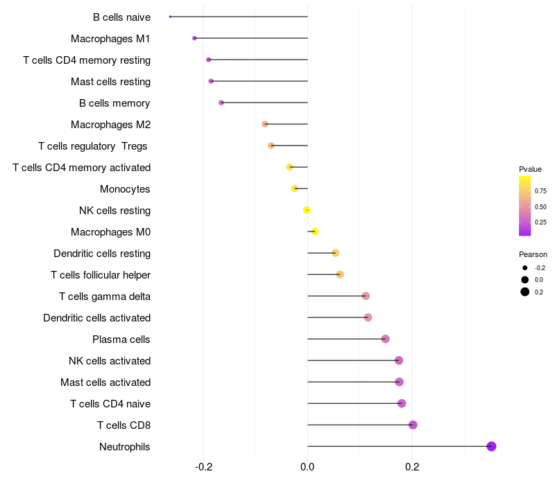 Lollipop of RTKN expression and immune infiltrating cell level correlation result in HPV+ samples
