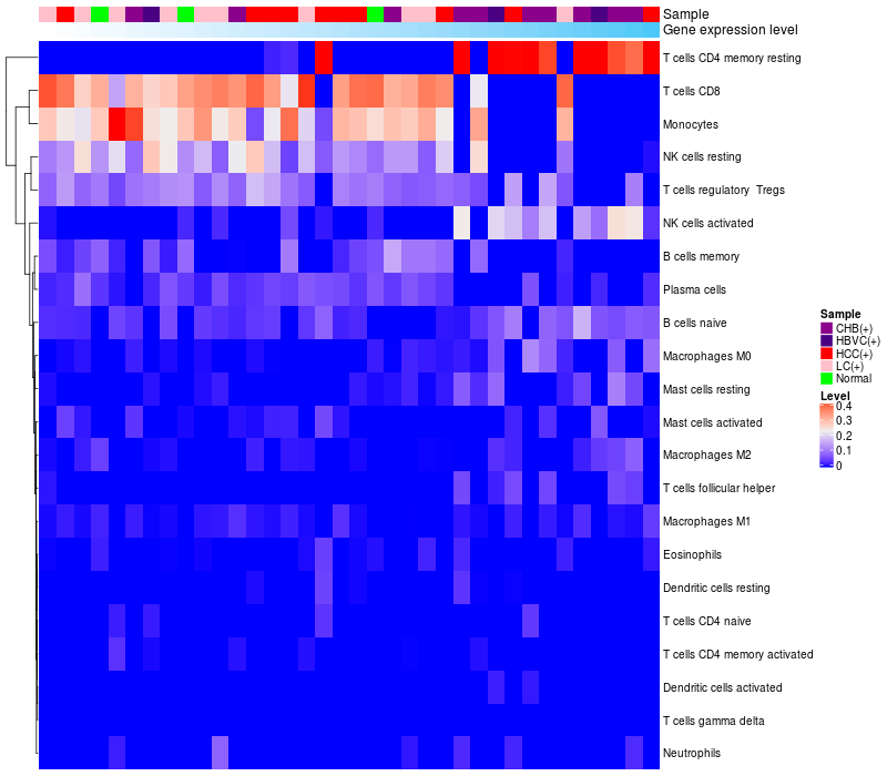 Liver hepatocellular carcinoma HCV (HBV+)(86), Liver hepatocellular carcinoma HCV (HBV-)(19), Liver hepatocellular carcinoma (HBV+)(209), Liver hepatocellular carcinoma (HBV+)(60), Paracancerous HCV (HBV+)(4), Paracancerous (HBV-)(28), Paracancerous (HBV+)(18) |