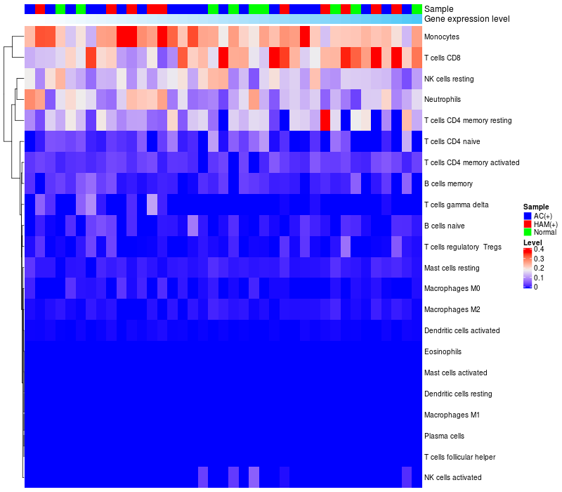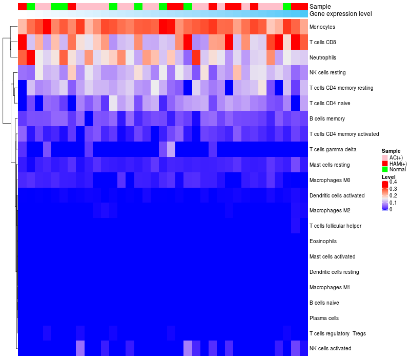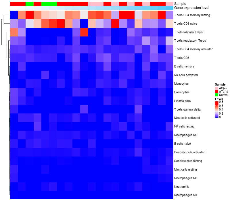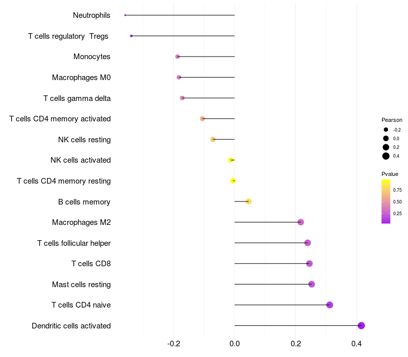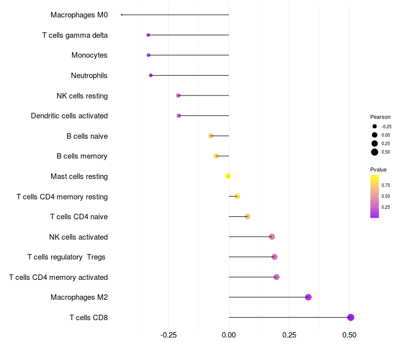 Relationship between gene expression and immune infiltrating cell level