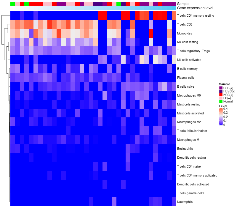 Relationship between gene expression and immune infiltrating cell level