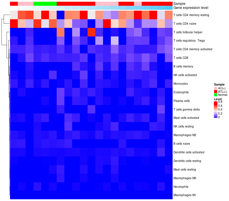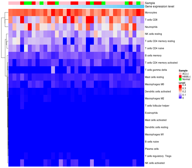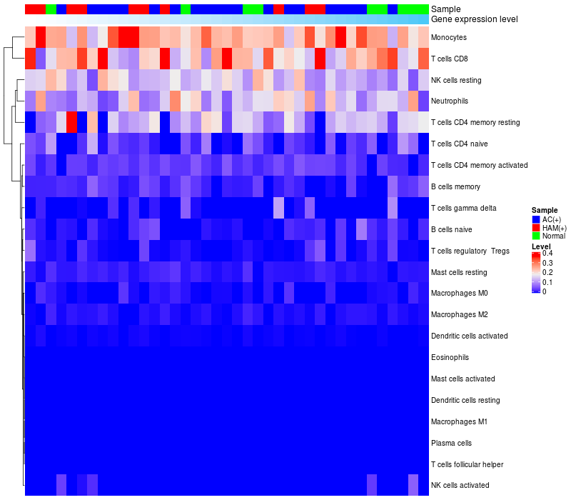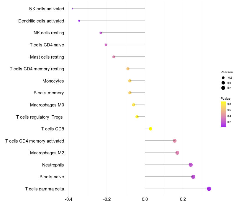 Lollipop of SCARA5 expression and immune infiltrating cell level correlation result in HTLV1+ samples