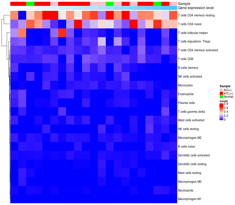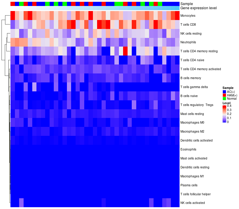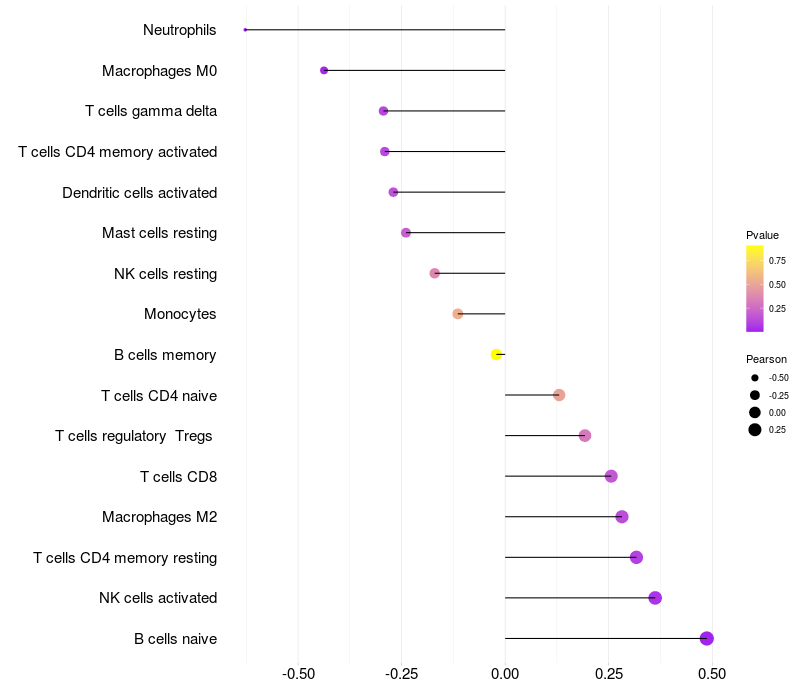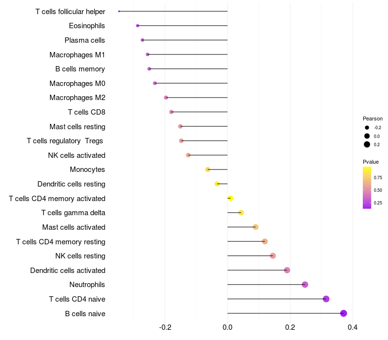 Lollipop of SCOC expression and immune infiltrating cell level correlation result in HTLV1+ samples