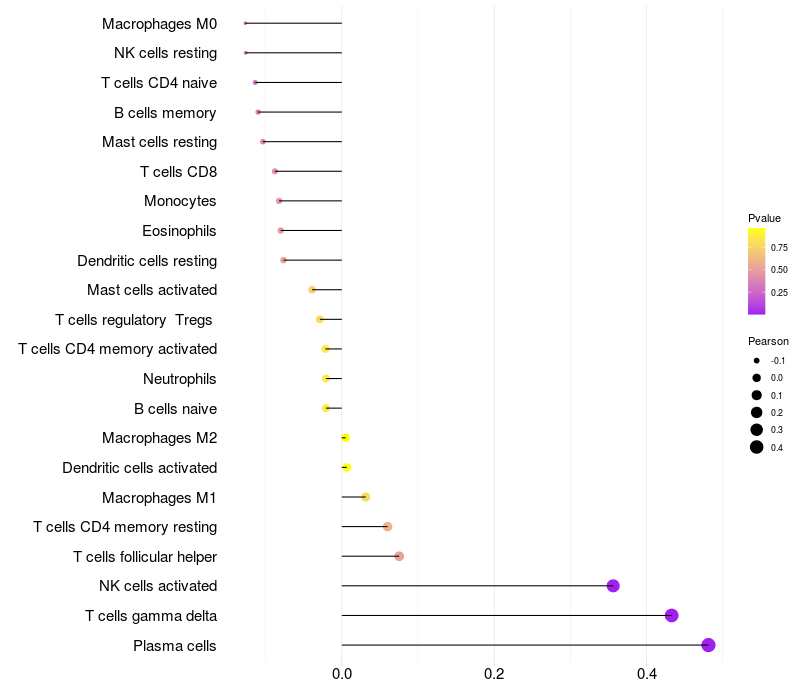 Relationship between gene expression and immune infiltrating cell level
