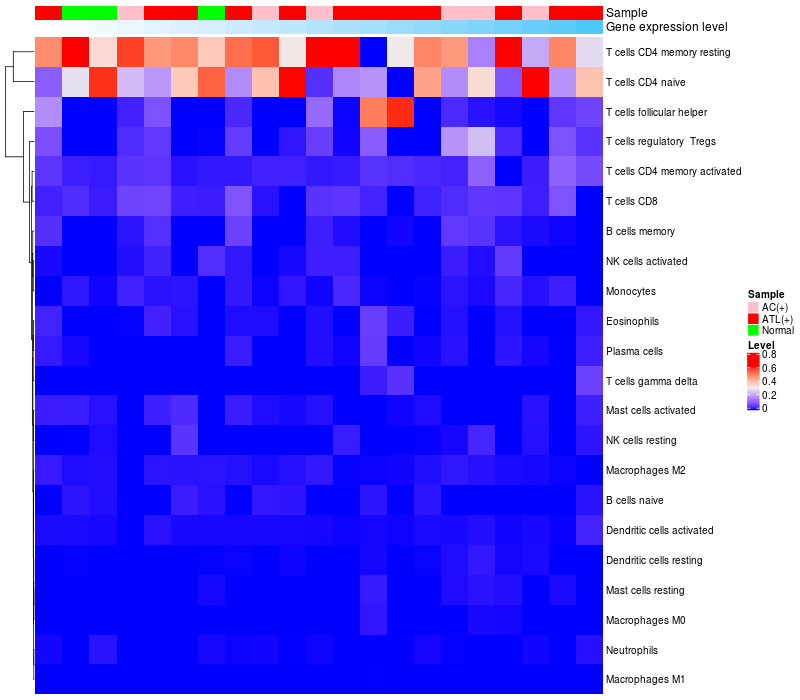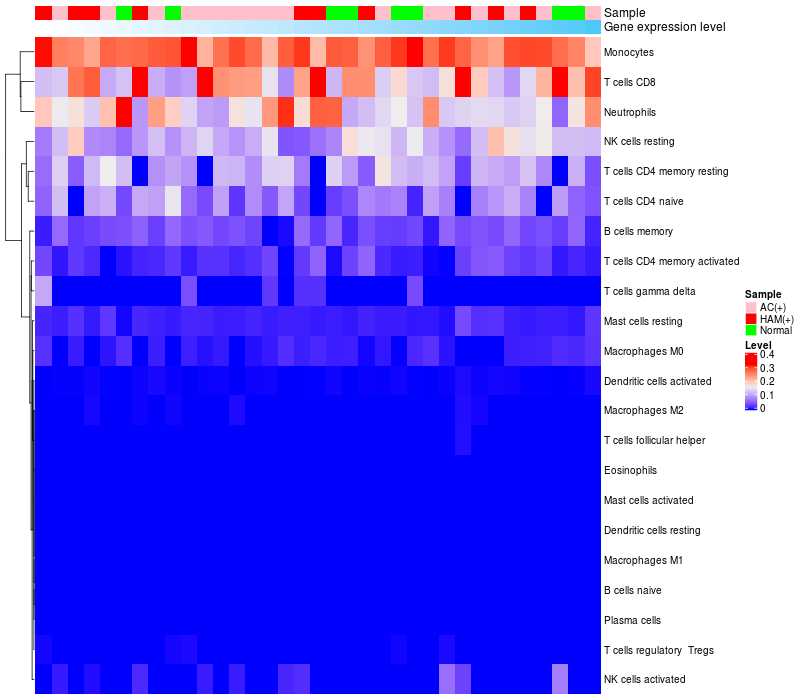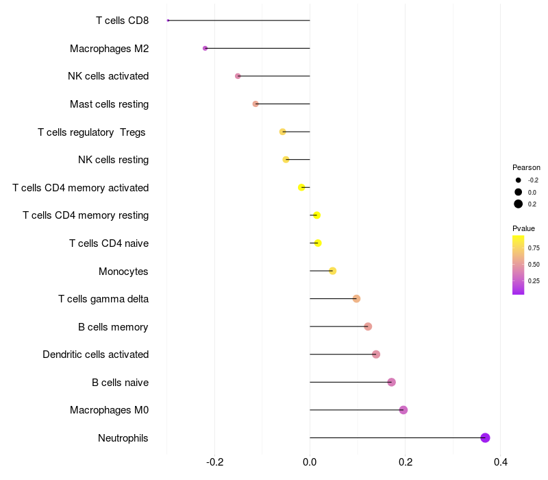 Lollipop of SGTB expression and immune infiltrating cell level correlation result in HTLV1+ samples