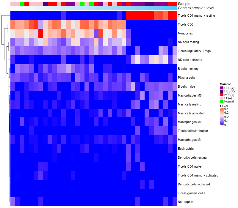 Liver hepatocellular carcinoma HCV (HBV+)(86), Liver hepatocellular carcinoma HCV (HBV-)(19), Liver hepatocellular carcinoma (HBV+)(209), Liver hepatocellular carcinoma (HBV+)(60), Paracancerous HCV (HBV+)(4), Paracancerous (HBV-)(28), Paracancerous (HBV+)(18) |