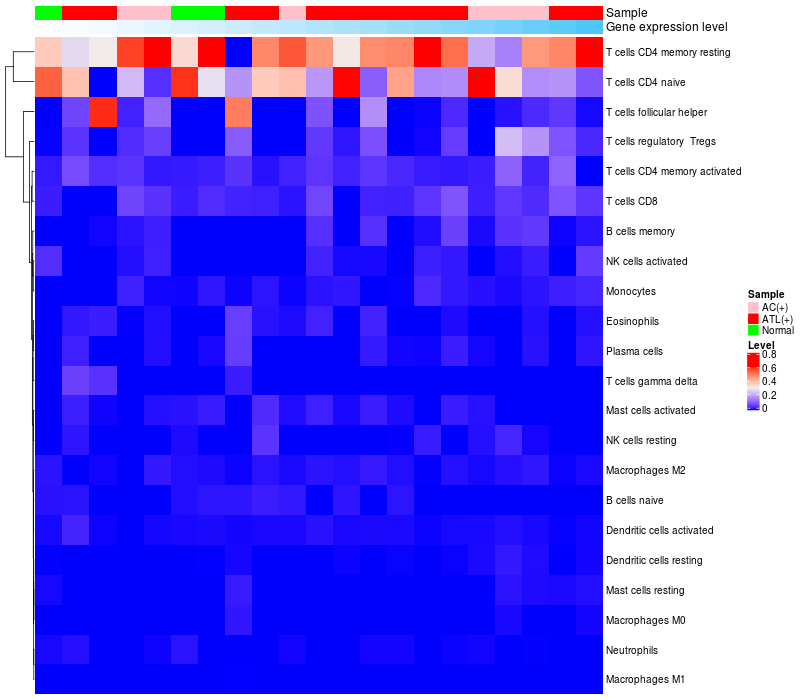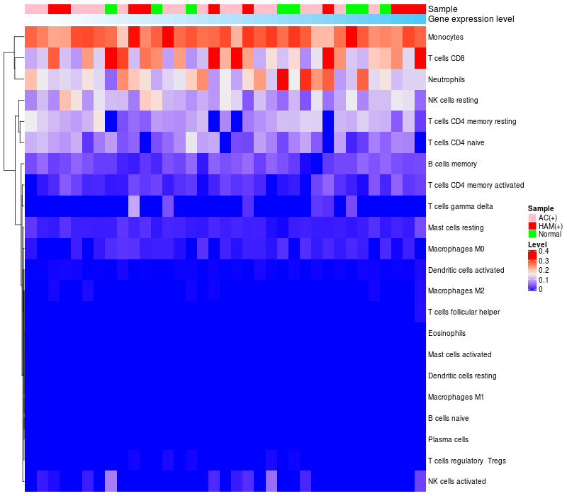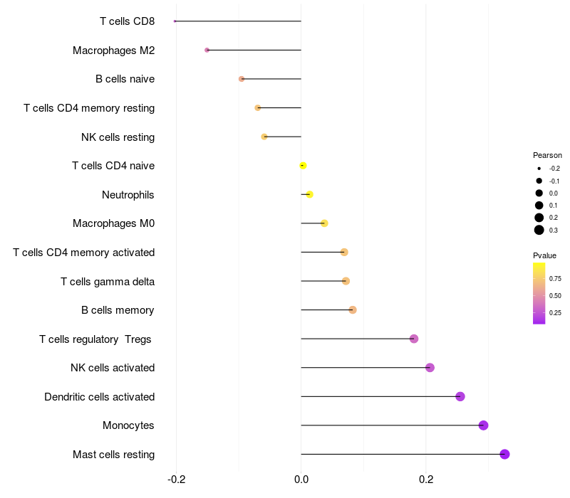 Lollipop of SHANK1 expression and immune infiltrating cell level correlation result in HTLV1+ samples